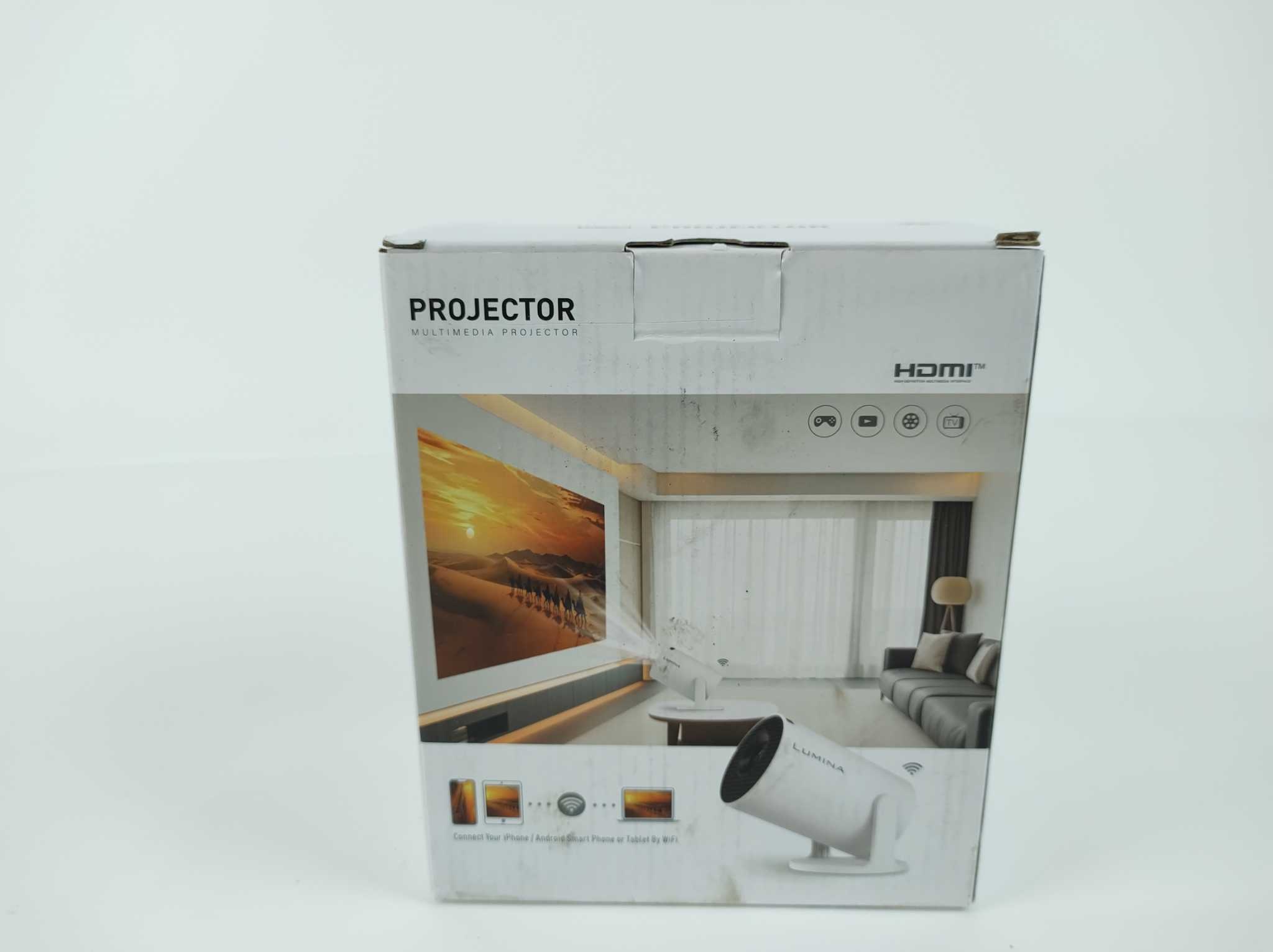 Lumina Mini Beamer Pro - Wit. Met de Lumina Pro Mini Beamer 2025 maak je van elke kamer een thuisbioscoop. De compacte projector projecteert helder met 250 ANSI en ondersteunt 4K-invoer voor scherpe films en presentaties. Dankzij Android 14 stream je apps direct, terwijl WiFi 6 en Bluetooth 5.4 stabiel verbinden met smartphone of speaker. Automatische keystonecorrectie zet het beeld recht. HDMI- en USB-aansluiting maken koppelen eenvoudig. Meegeleverd: bluetooth afstandsbediening en HDMI-kabel. Met 1,2–4 meter projectieafstand en 50.000 uur ledlevensduur geniet je jarenlang overal zonder gedoe.
