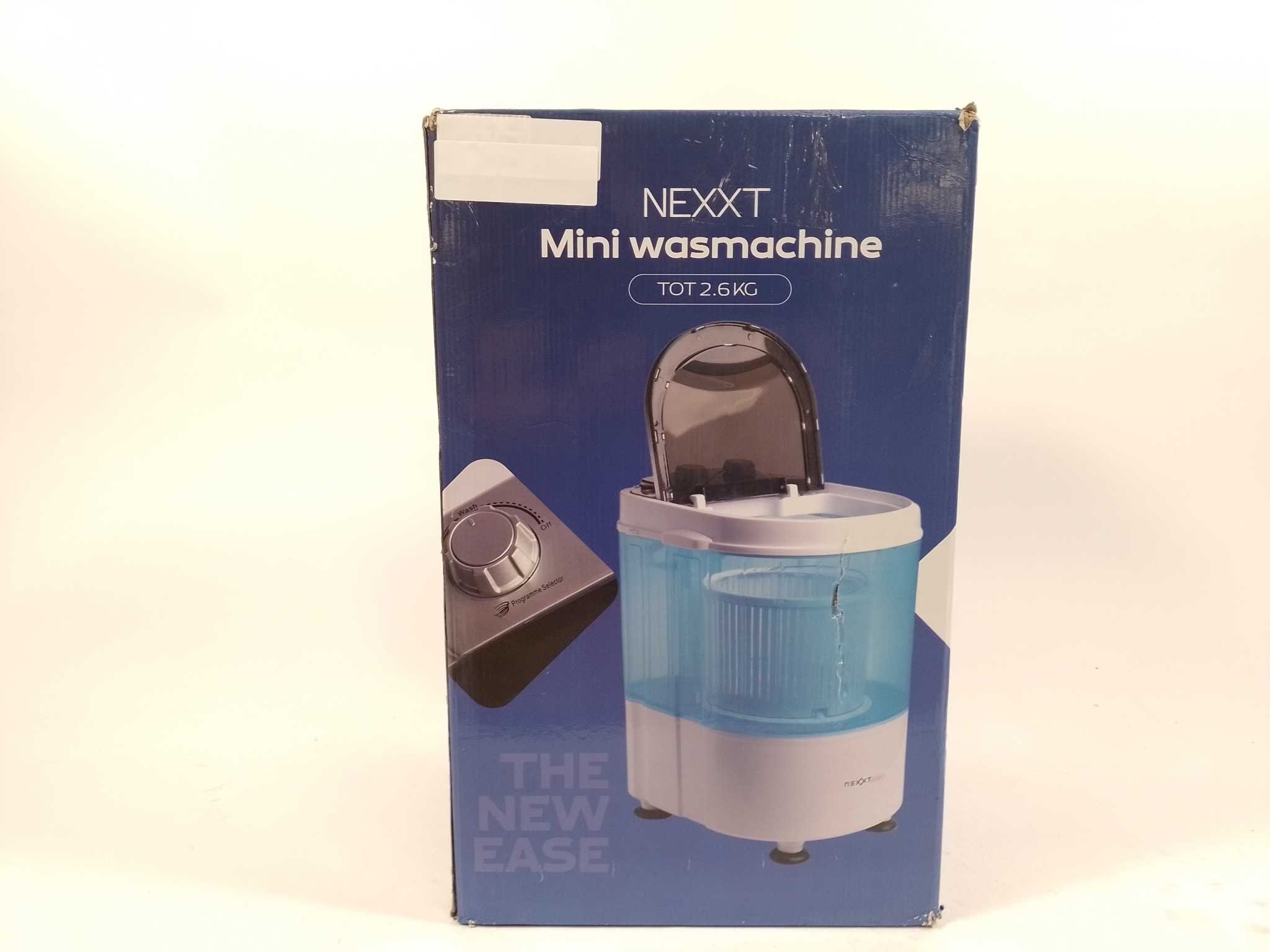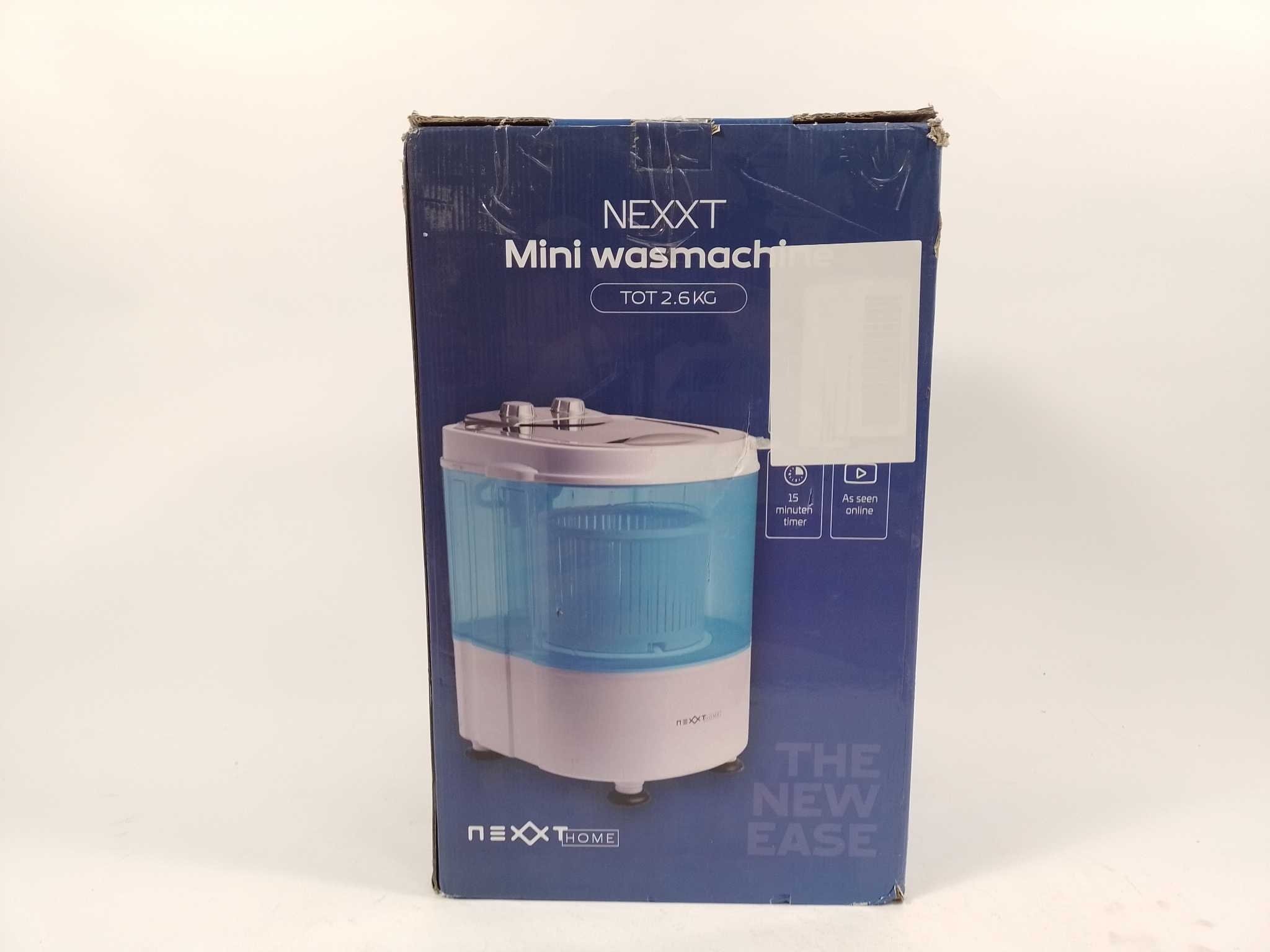 Nexxt Mini Wasmachine - CO130923. Was overal je kleding met de Nexxt mini wasmachine met centrifuge: dé compacte campingwasmachine voor appartement, studentenkamer of vakantie. De bovenlader wast tot 2,6 kg en centrifugeert tot 2 kg, met snelle 15-minuten cyclus voor kleine wasjes. Stel was- en centrifugeertimer eenvoudig in met de draaiknoppen en profiteer van energiezuinig gebruik met automatische uitschakeling. Draaghandvat maakt verplaatsen makkelijk. Inclusief afvoerslang en handleiding. Door het lage waterverbruik is hij ideaal voor sokken, babykleertjes en sportkleding; na afloop tap je eenvoudig af.