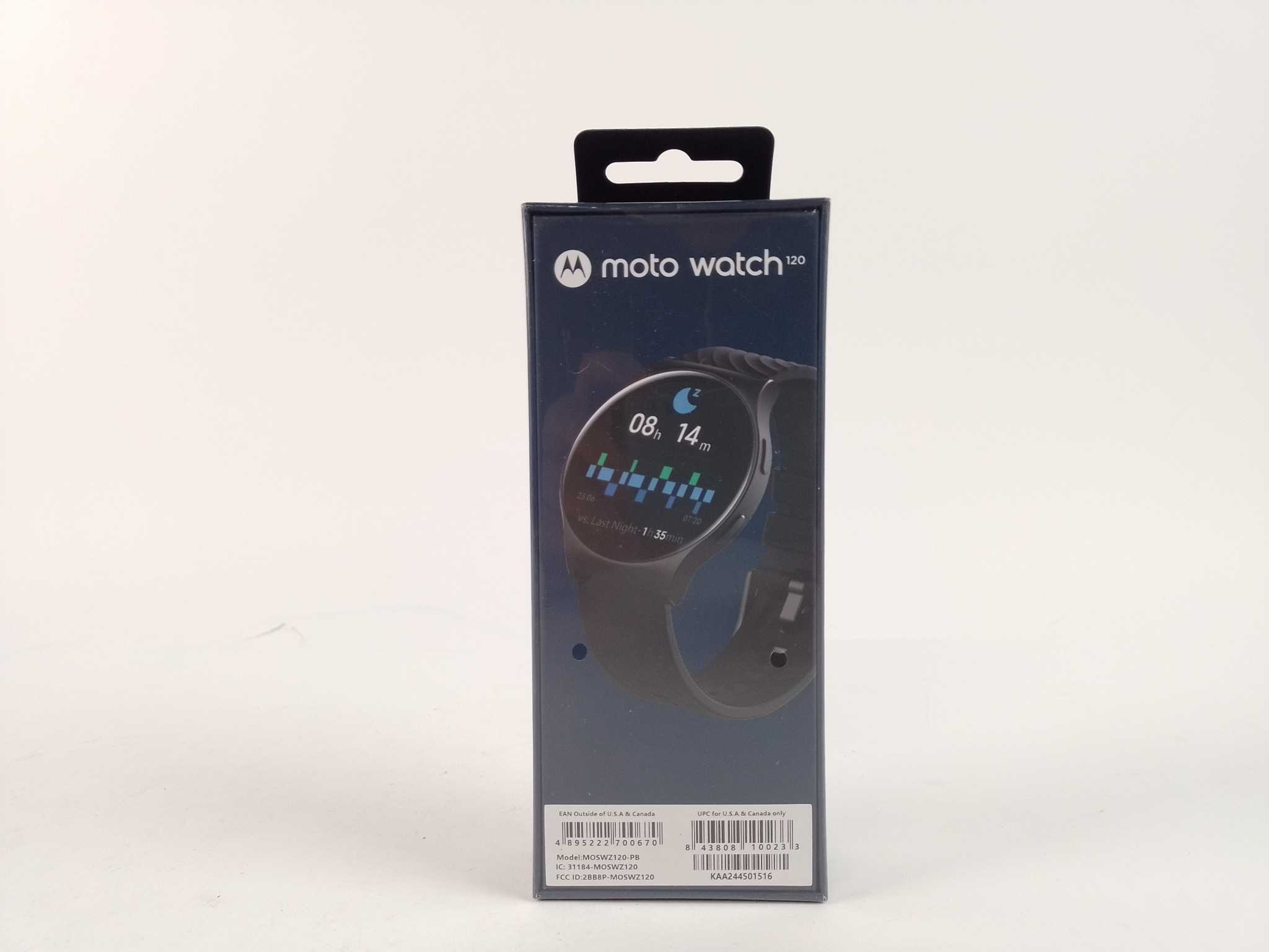 Motorola Moto Watch 120 - Phantom Black. Motorola Moto Watch 120 in Phantom Black combineert premium design met slimme functies. Het 1,43-inch AMOLED-scherm, Bluetooth-bellen en IP68-waterbestendigheid maken dagelijks gebruik eenvoudig. Meet hartslag en S