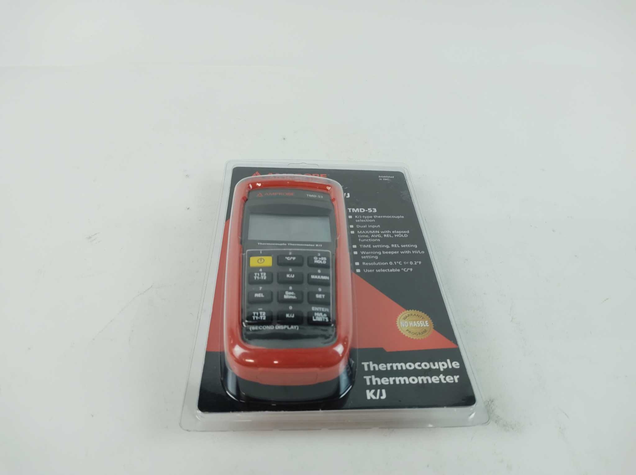 Beha-Amprobe Multimeter TMD-53. De Beha-Amprobe TMD-53 is een professionele thermokoppel-thermometer met dubbele invoer (T1/T2) voor K- en J-type. Meet razendsnel van −200 tot +1370 °C, met T1-T2 temperatuurverschil, MIN/MAX, AVG, REL en Hold. Instelbare