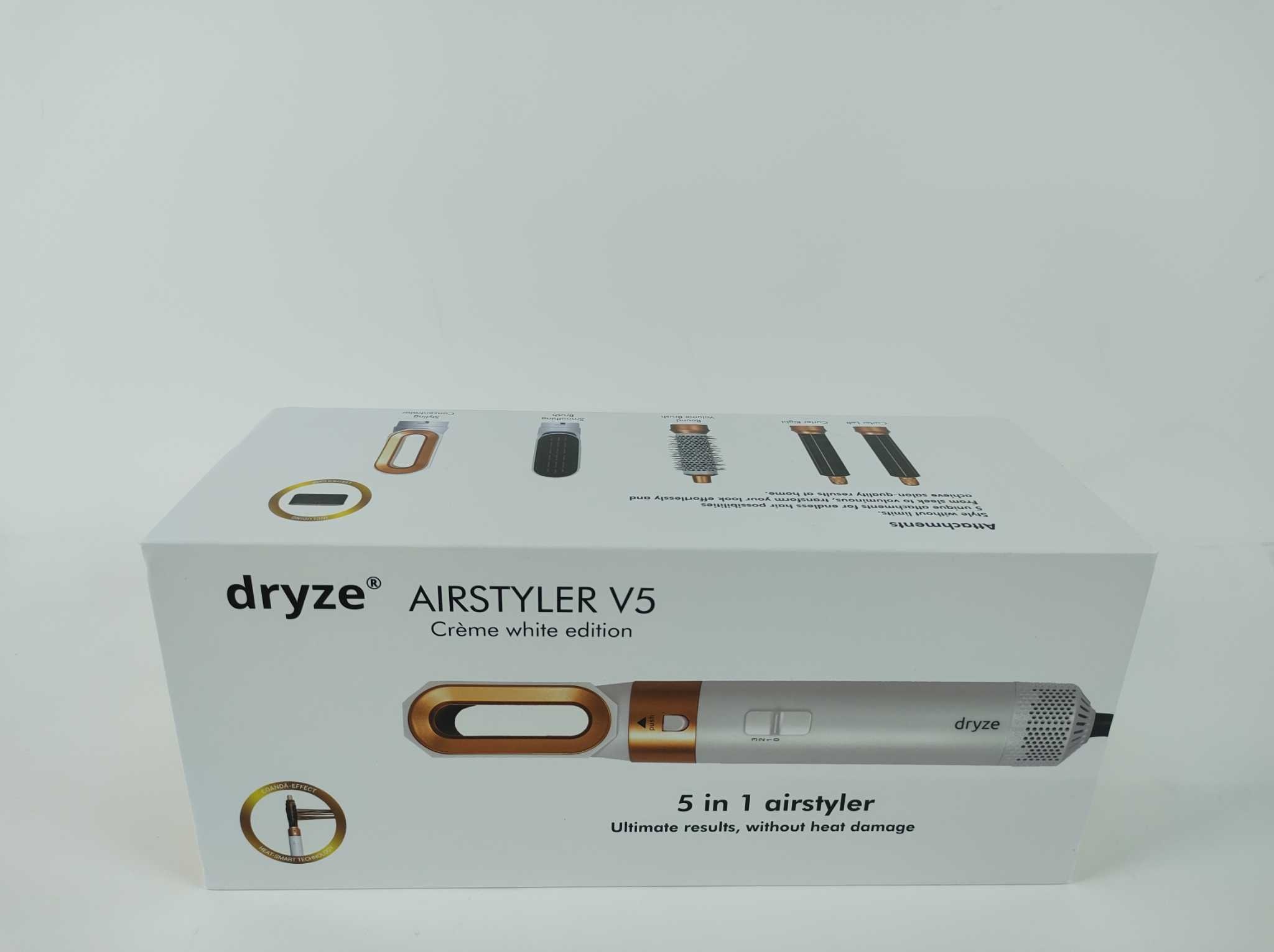Dryze Multistyler 5-in-1 - Wit/Goud. De Dryze Airstyler White/Gold Edition is een veelzijdige 5-in-1 multistyler voor drogen, steilen, krullen en extra volume met één apparaat. Dankzij het Coandă-effect, ionentechnologie en keramische coating style je je