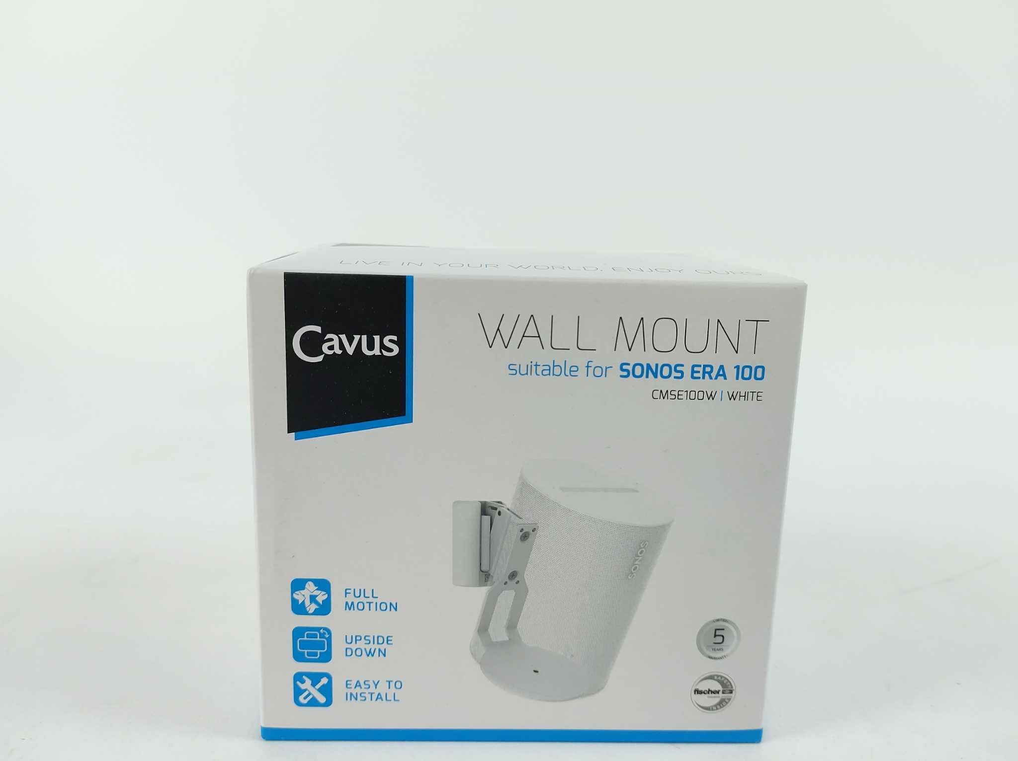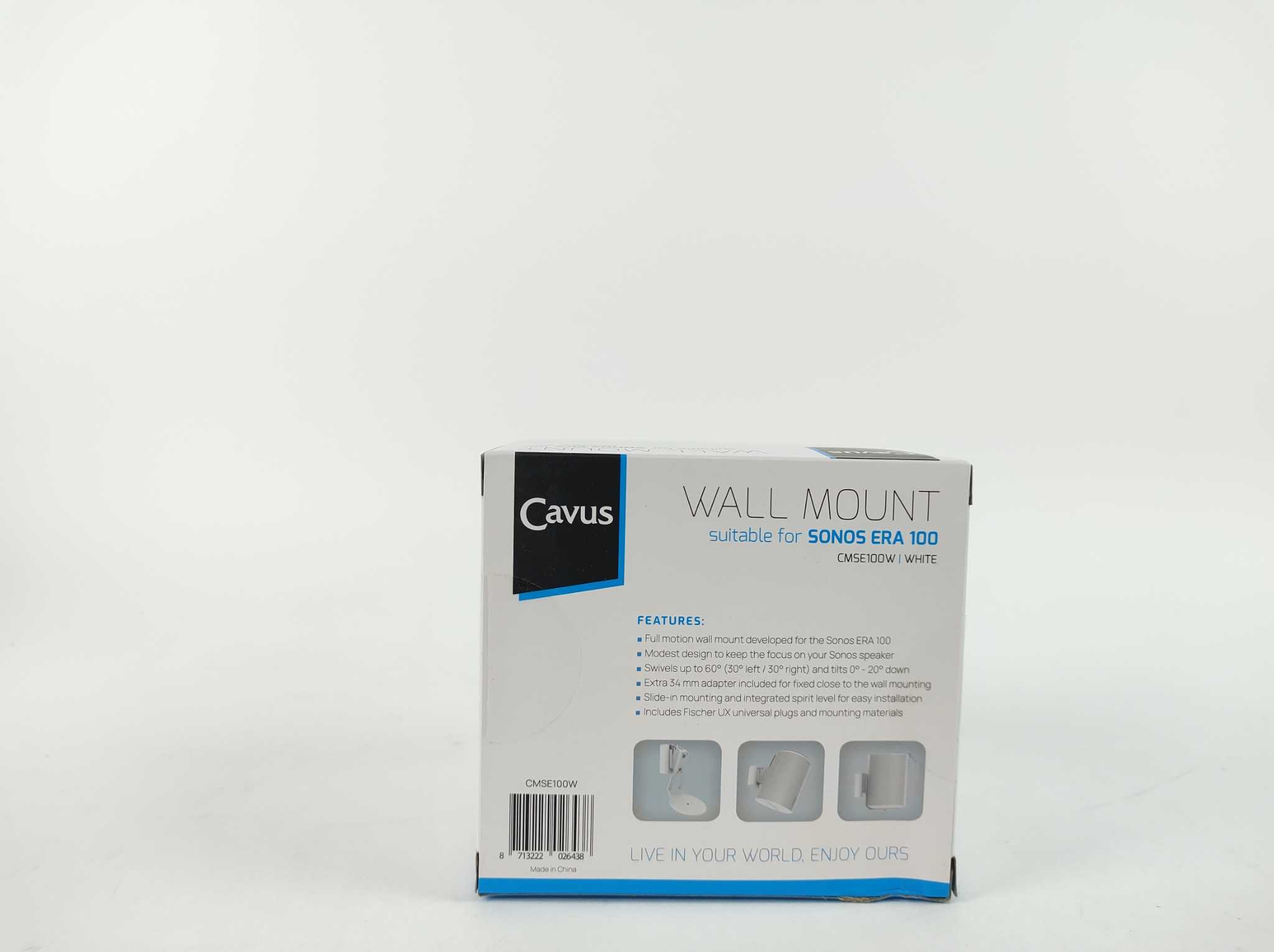 Cavus Muurbeugel voor Sonos Era 100 - Wit. De Cavus CMSE100W muurbeugel voor Sonos Era 100 (wit) positioneert je speaker perfect voor rijker geluid. Draaibaar tot 60° en kantelbaar 20° voor optimale sweet spot en minder reflecties. Trillingdempende, stevige stalen constructie met strak, speaker-matched afwerking. Inclusief geïntegreerde waterpas, 34 mm adapter voor nauwe wandmontage, montagemateriaal en handleiding. Ook omgekeerd te monteren voor makkelijke bediening. Bespaar ruimte, verbeter verstaanbaarheid en geniet van een nette installatie in woonkamer, keuken of werkplek. Ideaal voor stereopaar of surround-achterkanalen in Sonos-opstelling bij film.