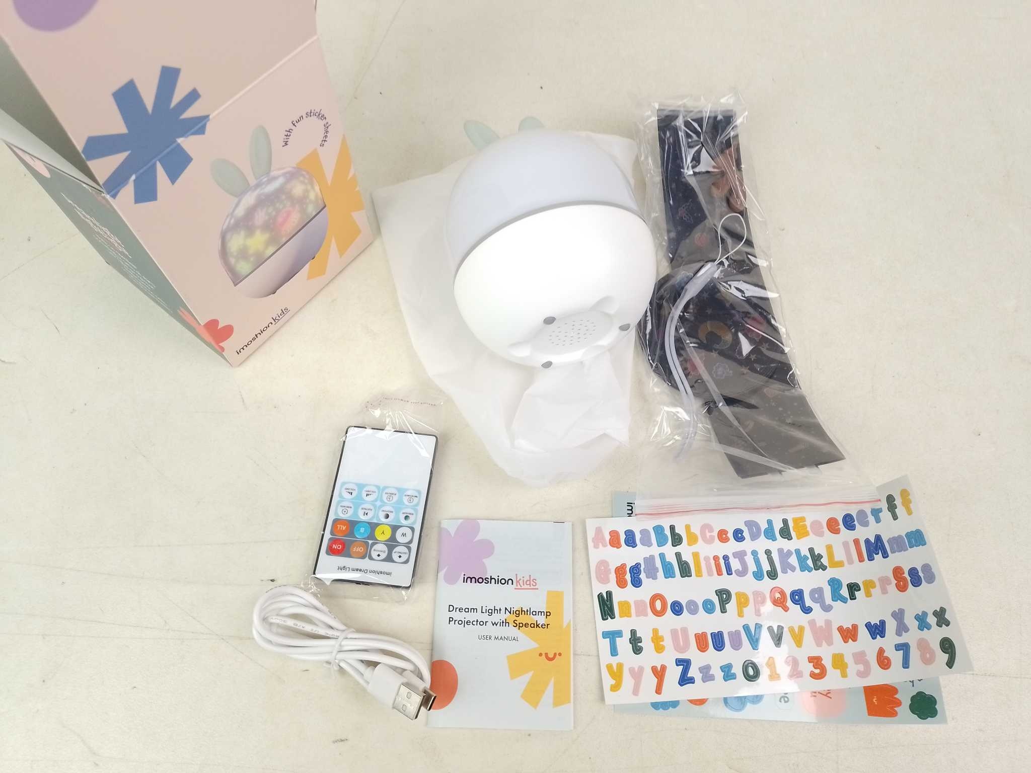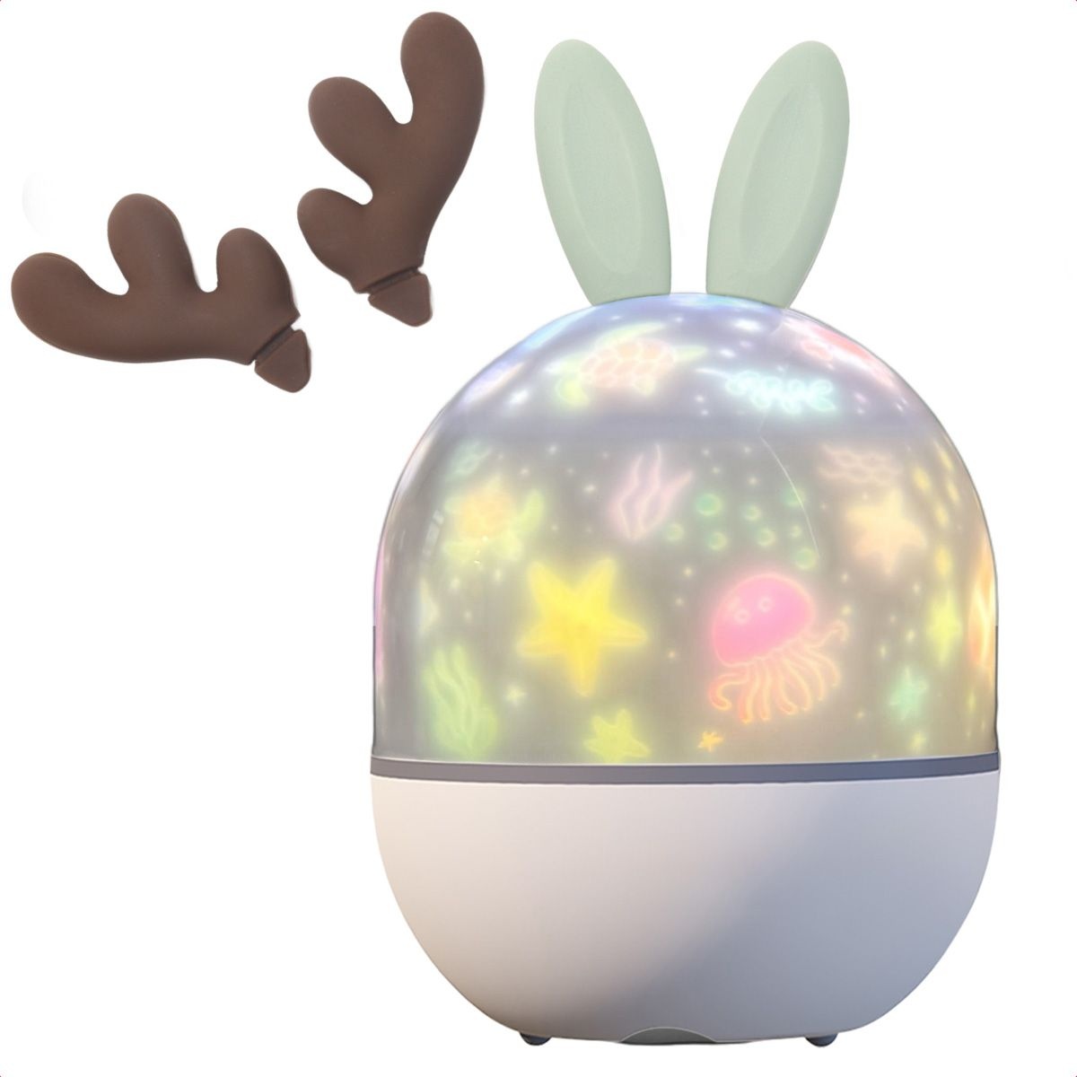 iMoshion Nachtlamp Projector Dreamlight - Wit. De imoshion Dreamlight nachtlamp projector met speaker verandert elke slaapkamer in een rustgevende droomwereld. Projecteert helder op plafond of muur en geeft zacht nachtlamplicht voor een ontspannen bedtijd, voor ieder gezin. Kies uit 10 verwisselbare projectierollen voor sterrenhemel, oceaan en meer. Verbind via Bluetooth met je telefoon en speel slaapmuziek of verhaaltjes af. De oplaadbare accu biedt tot 6 uur gebruik. Bedien eenvoudig met de meegeleverde afstandsbediening. In de doos: projectiesets, oplaadkabel, koord, stickervel, handleiding én leuke hertengeweien- en konijnenorenaccessoires.