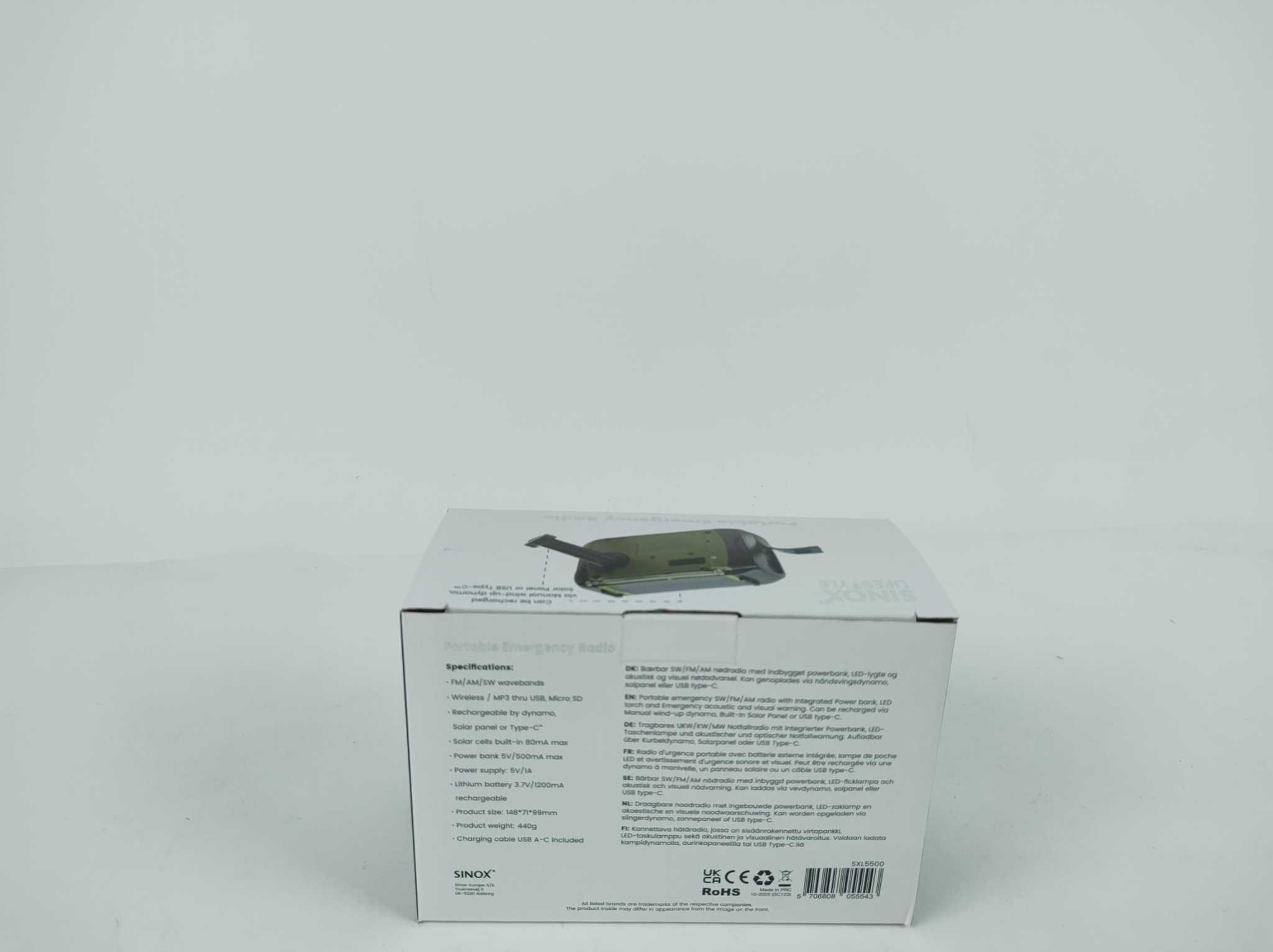 Sinox Noodradio SXL5500 - Groen. De Sinox SXL5500 noodradio combineert veiligheid, gebruiksgemak en veelzijdigheid in één compact apparaat. Met FM-, AM- en SW-radio, Bluetooth, MP3-weergave via USB en Micro SD blijf je overal geïnformeerd en verbonden. De ingebouwde LED-lamp, noodalarm en powerbank maken hem ideaal voor kamperen, reizen en noodsituaties. Opladen kan via zonne-energie, handslinger of USB-C, zodat je ook zonder stopcontact voorbereid bent. Dankzij het draagbare ontwerp neem je deze alles-in-één radio eenvoudig mee en beschik je altijd over licht, muziek en stroom onderweg.
