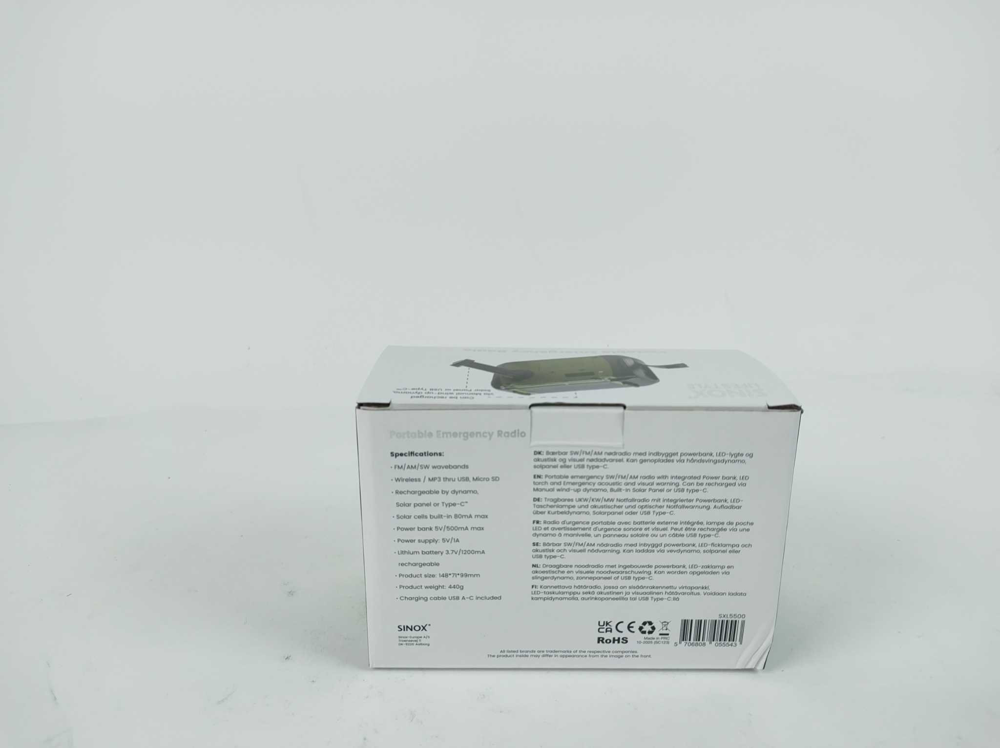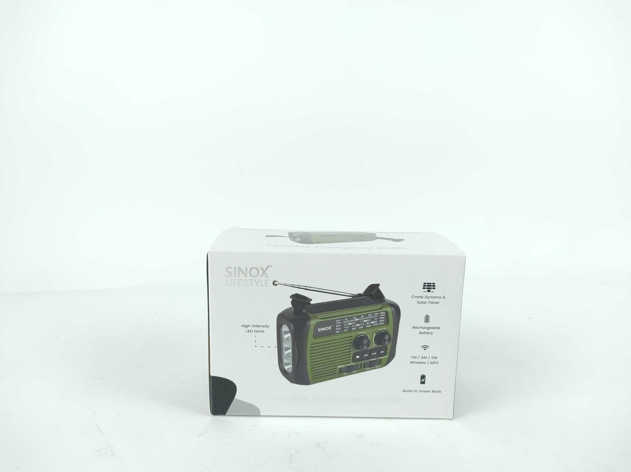 Sinox Noodradio SXL5500 - Groen. De Sinox SXL5500 noodradio combineert veiligheid, gebruiksgemak en veelzijdigheid in één compact apparaat. Met FM-, AM- en SW-radio, Bluetooth, MP3-weergave via USB en Micro SD blijf je overal geïnformeerd en verbonden. De ingebouwde LED-lamp, noodalarm en powerbank maken hem ideaal voor kamperen, reizen en noodsituaties. Opladen kan via zonne-energie, handslinger of USB-C, zodat je ook zonder stopcontact voorbereid bent. Dankzij het draagbare ontwerp neem je deze alles-in-één radio eenvoudig mee en beschik je altijd over licht, muziek en stroom onderweg.