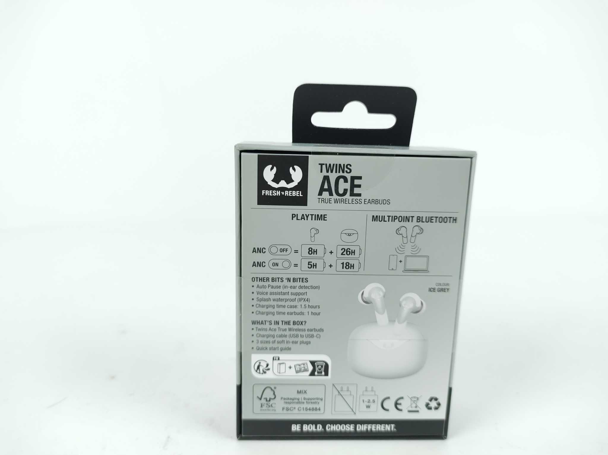 Fresh 'n Rebel Oordopjes Twins Ace - Grijs. De Fresh ’n Rebel Twins Ace draadloze oordopjes bieden krachtig geluid, comfort en slimme ruisonderdrukking voor muziek, bellen en reizen. Dankzij Hybrid Active Noise Cancelling, Ambient Sound Mode en ENC-microfoons luister en bel je helder in elke omgeving. Met tot 34 uur totale batterijduur, Multipoint Bluetooth en IPX4 spatwaterbestendigheid zijn ze ideaal voor dagelijks gebruik. De Ice Grey uitvoering wordt geleverd met oplaadcase en USB-C-kabel, perfect voor wie stijlvolle true wireless oordopjes zoekt met gemak, vrijheid en betrouwbare prestaties onderweg.