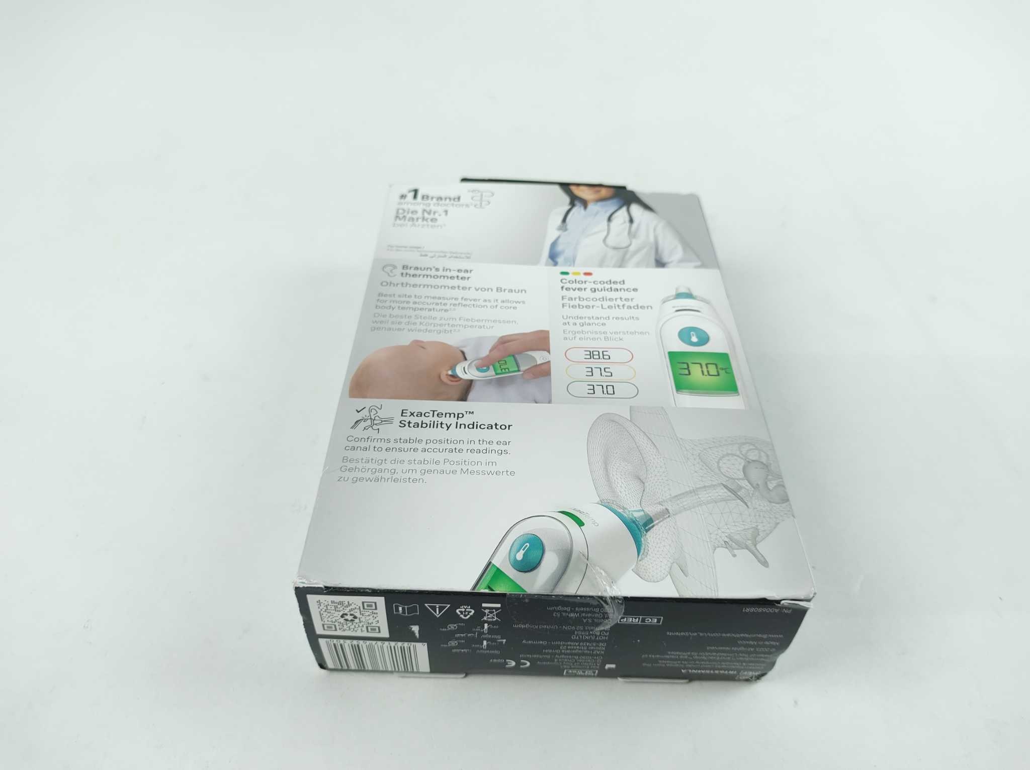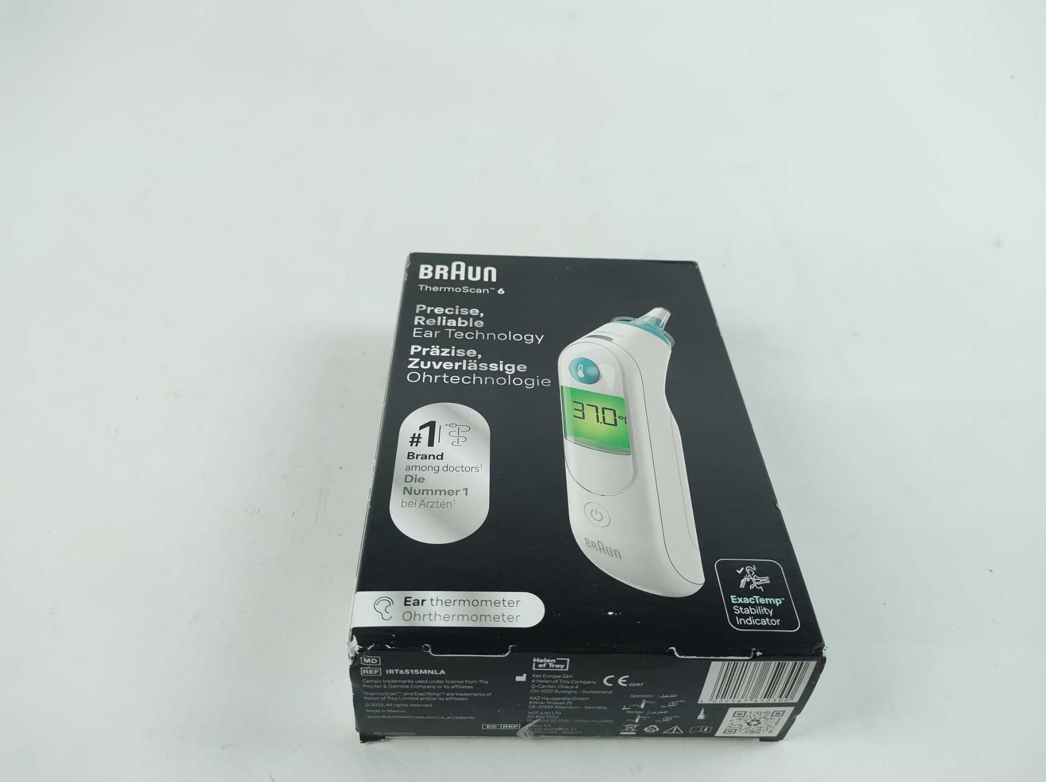 Braun Oorthermometer ThermoScan 6. Meet snel en betrouwbaar koorts met de Braun ThermoScan 6 oorthermometer. De voorverwarmde meetpunt vermindert afkoeling van het oor en verhoogt nauwkeurigheid. Dankzij ExacTemp-positiecontrole en kleurcodedisplay zie je
