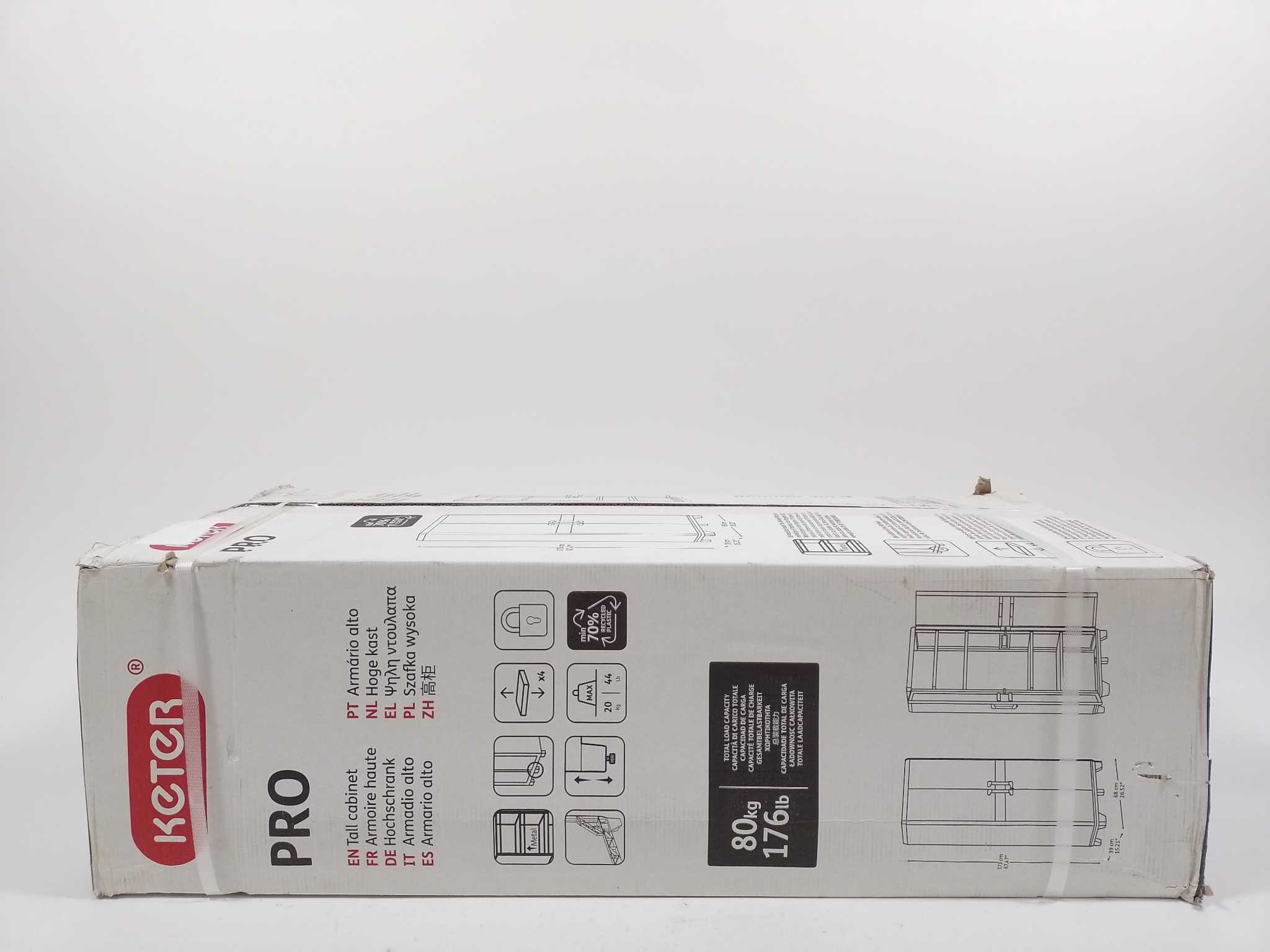 Keter Opbergkast Pro - 68×39×173 cm - Zwart/Grijs. De Keter Pro opbergkast (zwart/grijs) brengt orde in garage, schuur of bijkeuken. Vier verstelbare legplanken dragen elk 20 kg, terwijl afsluitbare deuren en aluminium handgrepen voor veiligheid en gebruiksgemak zorgen. Extra middenpoten verhogen stabiliteit. Duurzaam kunststof met polypropyleen achterwand is vochtbestendig en onderhoudsarm. Afmetingen: 68 × 39 × 173 cm; past tegen elke wand. Inclusief 4 planken en poten; geschikt voor hangslot (niet meegeleverd). Ideaal voor gereedschap, schoonmaakmiddelen en voorraad—strak design, sterke constructie en flexibele indeling. Montage gaat met klikverbindingen.