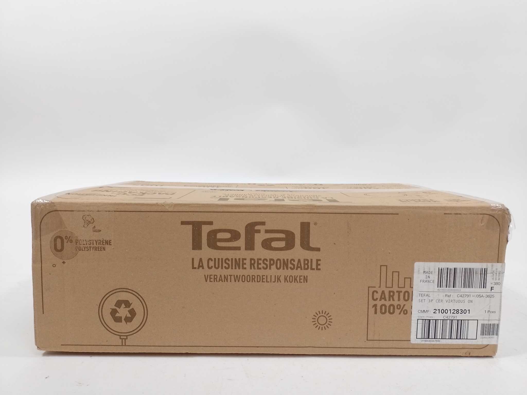 Tefal Pannenset 3-delig - Renew ON - Zwart. Deze Tefal Renew ON keramische pannenset bevat drie pannen (Ø 20/24/28 cm) met een Thermo‑Signal™‑indicator, die rood kleurt zodra de ideale baktijd is bereikt. Gemaakt van 100 % gerecycled aluminium met duurzame InoCeram‑coating – vrij van PFOA, lood en cadmium – voor vetarm bakken en eenvoudige reiniging. Dankzij de inductiebodem geschikt voor alle warmtebronnen, inclusief inductie. Eco‑ontwerp en robuust gebruiksgemak komen samen in deze stijlvolle set.