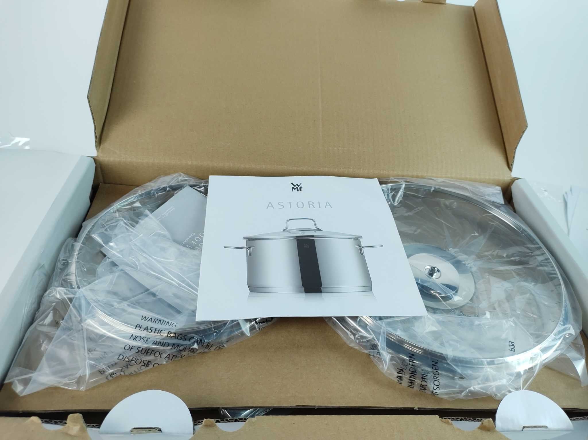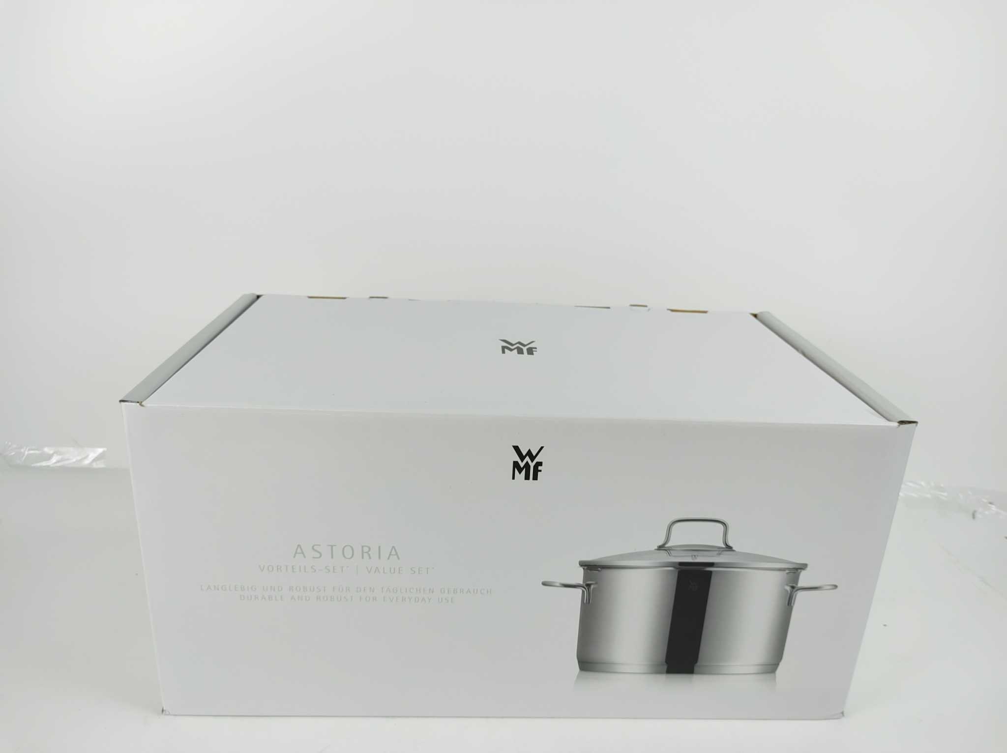 WMF Pannenset Astoria 5-delig. De WMF Astoria pannenset 5-delig brengt premium kookcomfort naar elke keuken. Gemaakt van slijtvast 18/10 roestvrij staal met TransTherm universeelbodem voor snelle, gelijkmatige warmte op alle warmtebronnen, inclusief induc
