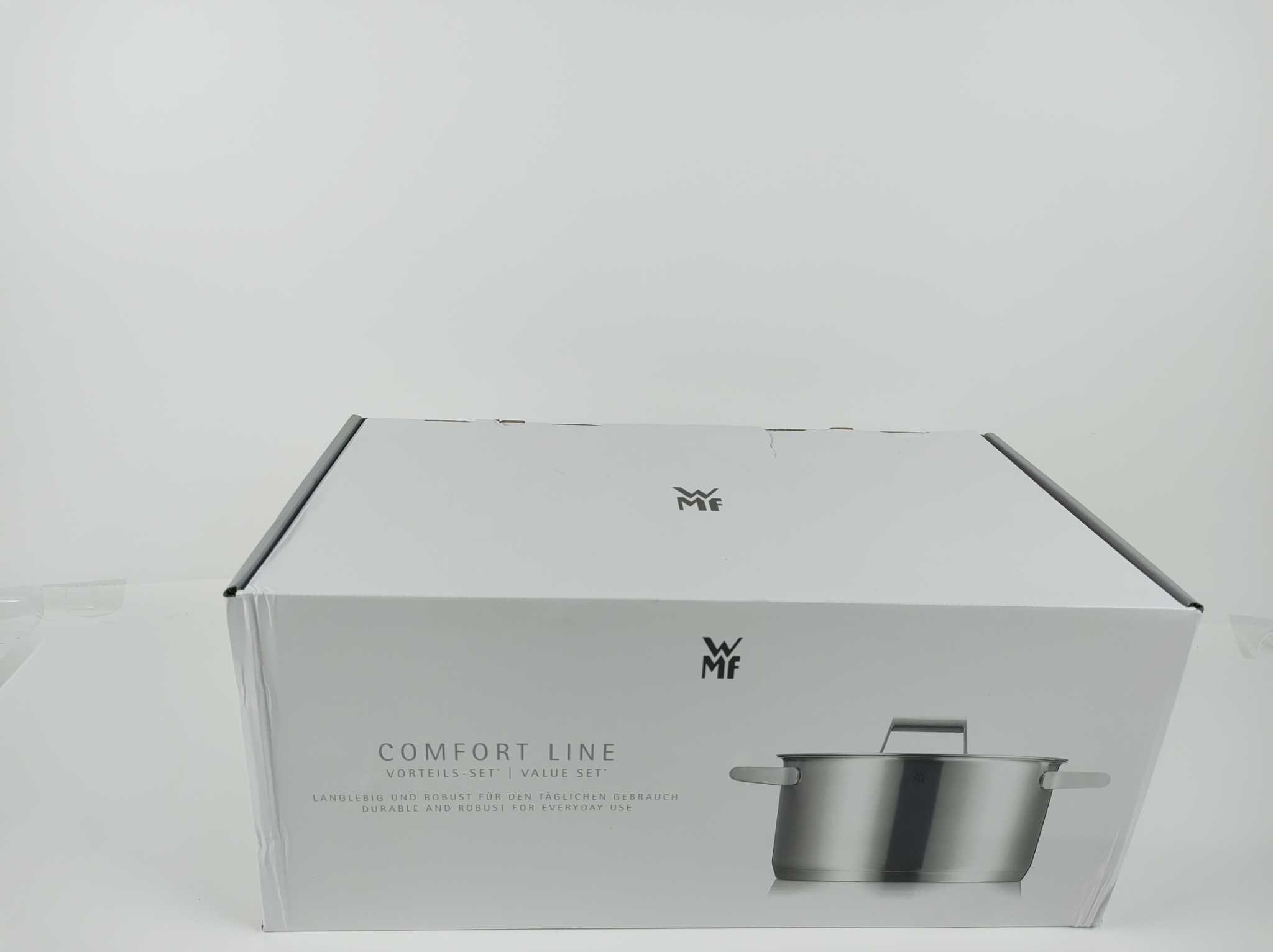 WMF Pannenset Comfort Line - 5-delig. Met de WMF Comfort Line pannenset 5-delig kook je elke dag snel en gelijkmatig op gas, keramisch én inductie. Het matte Cromargan 18/10 RVS is krasvast, smaakneutraal en vaatwasserbestendig. De TransTherm bodem verdee