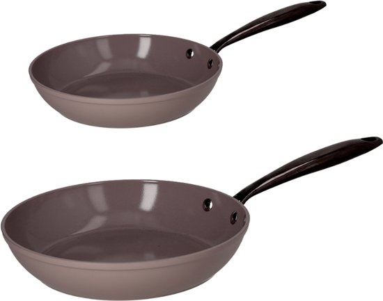 Cook & Pan Pannenset Taupe of Mind - Taupe. Kook gezond en stijlvol met de Cook & Pan “Taupe of Mind” koekenpannenset. Deze 2-delige set (24 en 28 cm) heeft een 100% PFAS-vrije keramische antiaanbaklaag voor knapperig bakken met weinig olie. Geschikt voor