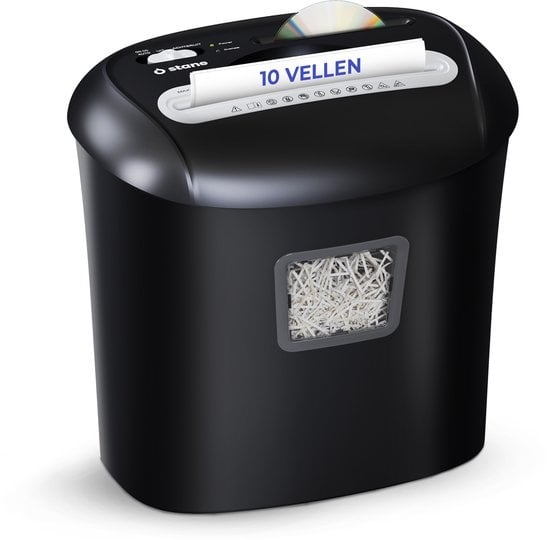 Stane Papierversnipperaar 21L. Bescherm je privacy met de Stane papierversnipperaar voor thuis en (thuis)kantoor. De crosscut shredder versnijdt tot 10 A4-vellen tegelijk tot P-4 snippers (5×16 mm) en vernietigt ook één creditcard of cd. Automatische star