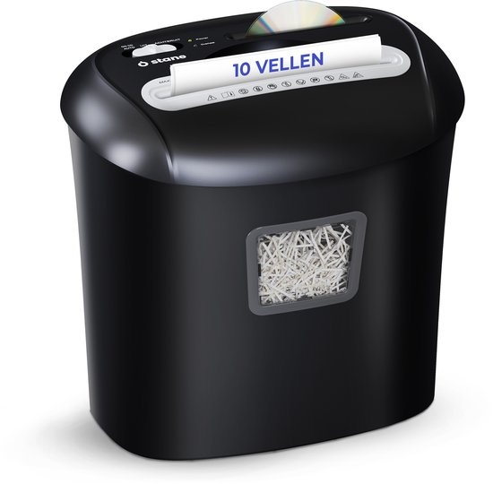 Stane Papierversnipperaar 21L. Bescherm je privacy met de Stane papierversnipperaar voor thuis en (thuis)kantoor. De crosscut shredder versnijdt tot 10 A4-vellen tegelijk tot P-4 snippers (5×16 mm) en vernietigt ook één creditcard of cd. Automatische star