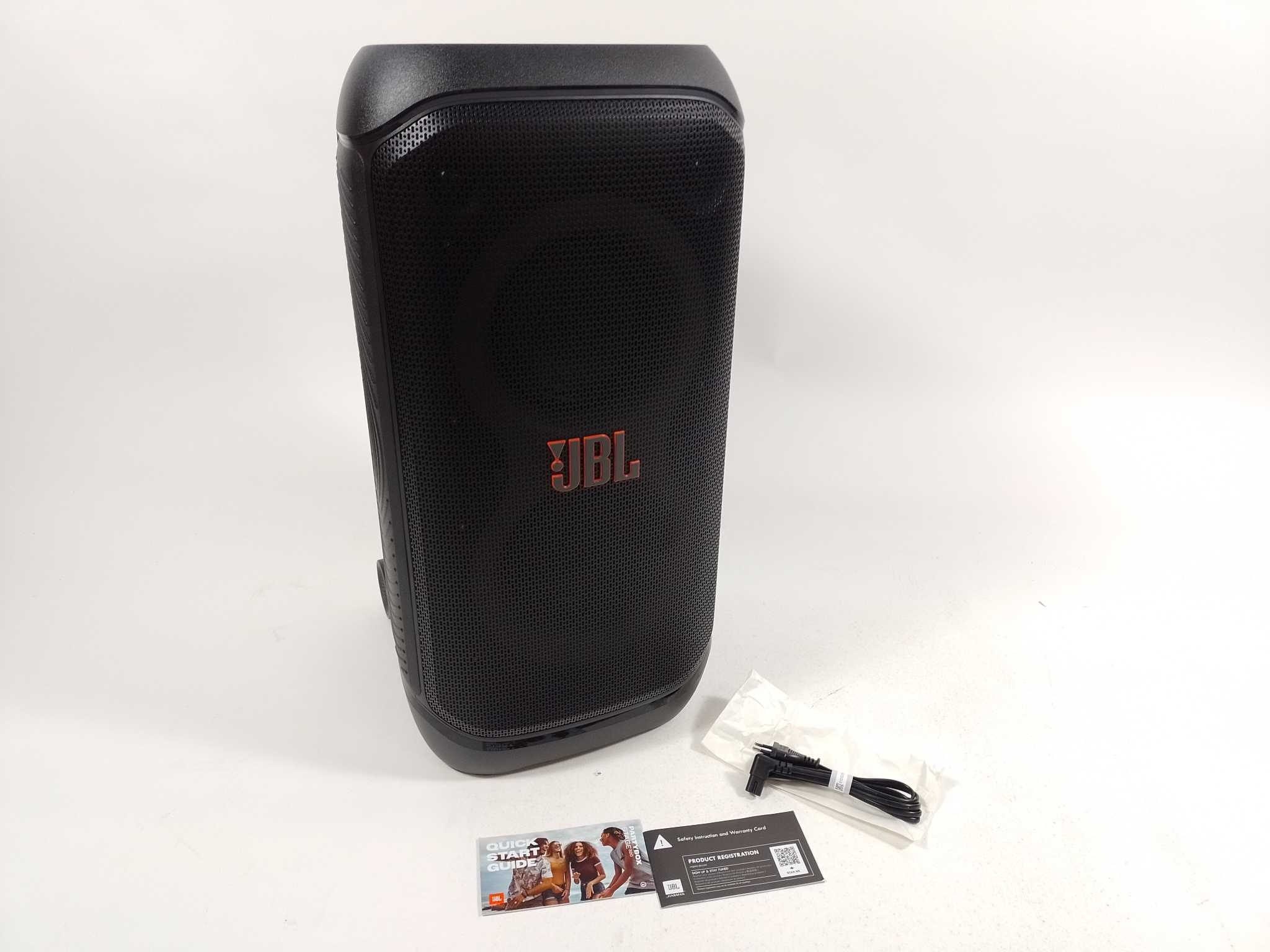 JBL Partybox Stage 320 - Zwart. Breng elk feest tot leven met de JBL PartyBox Stage 320: 240W JBL Pro Sound, futuristische lichtshow, 18 uur accu en IPX4-spatwaterdicht. Twee 6,5″ woofers en twee 1″ tweeters zorgen voor diepe bassen en sprankelende highs. Bluetooth en aux/USB bieden flexibele afspeelopties; koppel twee speakers voor stereo. Dankzij trolley-handgreep en wielen neem je hem overal mee. Inclusief netsnoer en snelstartgids. Met microfoon-/gitaaringangen en AI Sound Boost voor extra impact onderweg.