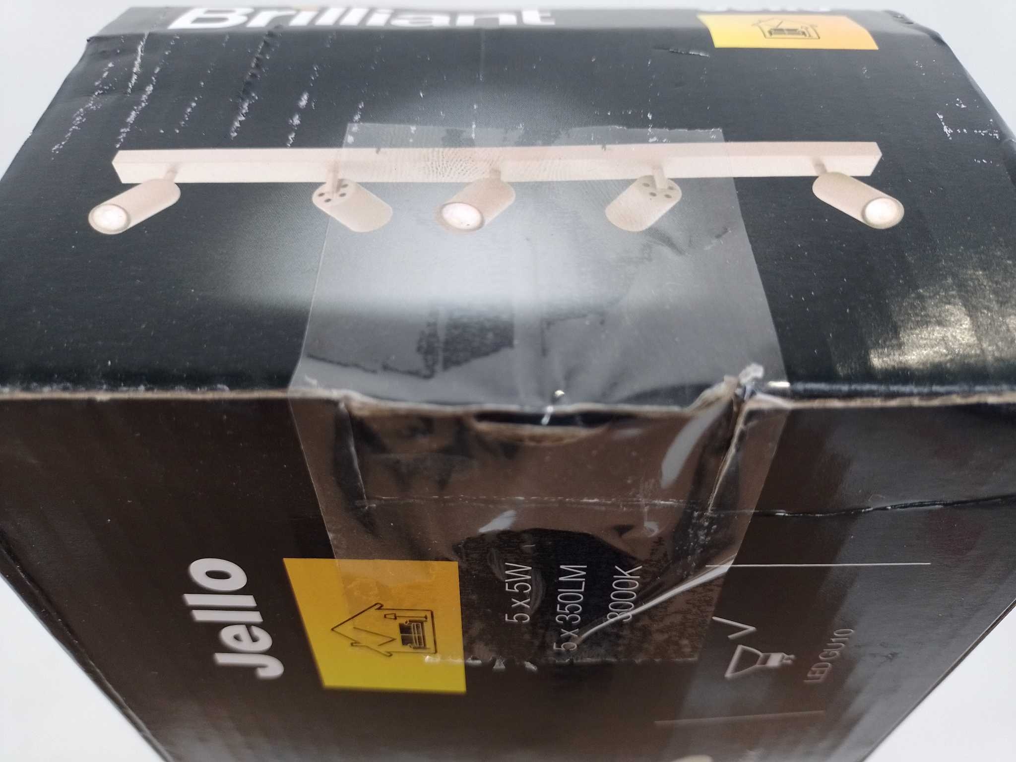 Brilliant Plafondlamp Jello - Champagne. Brilliant Jello plafondlamp in champagnekleur geeft jouw woonkamer, keuken of eetkamer direct sfeervol warm wit licht. De 91 cm balk heeft 5 kantelbare en draaibare GU10 LED-spots (5W, 350 lumen per spot, 3000K) vo