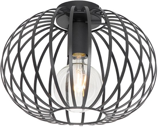 QAZQA Plafondlamp Johanna - Ø30 cm - Zwart. De QAZQA Johanna plafondlamp (Ø30 cm, zwart) geeft je interieur een modern-industrieel accent met een open metalen frame dat warm, sfeervol licht verspreidt. Geschikt voor E27-LED en dimbaar met externe dimmer voor perfecte ambiance. Compact profiel past moeiteloos in woonkamer, slaapkamer, hal of keuken. Eenvoudige montage met meegeleverde plafondplaat, schroeven en handleiding; lichtbron niet inbegrepen. Duurzame afwerking en tijdloos design maken dit een veelzijdige, stijlvolle keuze voor elk plafond thuis.