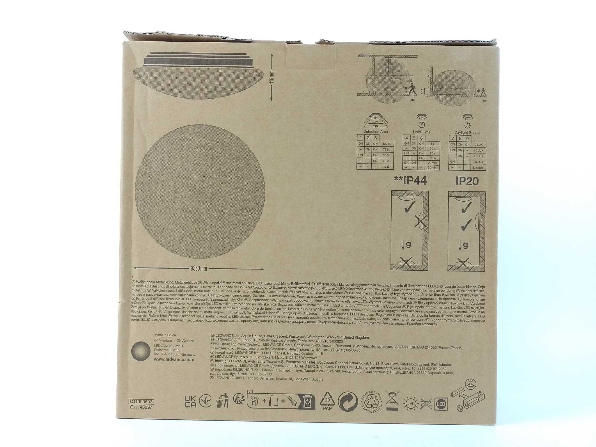 Ledvance Plafondlamp Surface Circular 350 Sensor. Verlicht gangen en entrees met de LEDVANCE Surface Circular 350 Sensor. Deze ronde plafonniere levert 1.440 lumen warm wit licht (3000K) uit 18 W, gelijkmatig verspreid door de matte diffuser. De ingebouwd