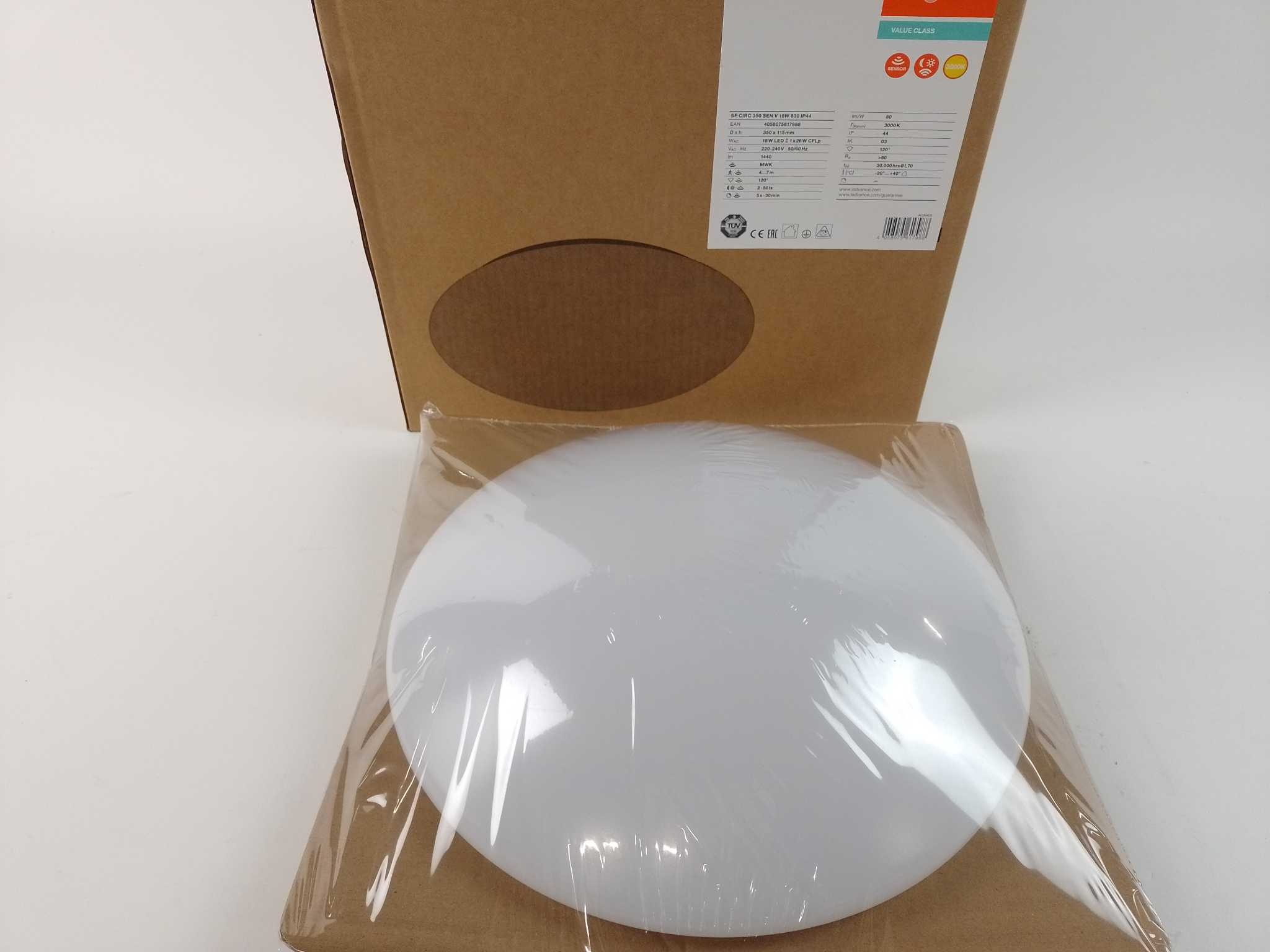 Ledvance Plafondlamp Surface Circular 350 Sensor. Verlicht gangen en entrees met de LEDVANCE Surface Circular 350 Sensor. Deze ronde plafonniere levert 1.440 lumen warm wit licht (3000K) uit 18 W, gelijkmatig verspreid door de matte diffuser. De ingebouwde HF-bewegingssensor schakelt automatisch in; IP44 maakt veilig gebruik binnen en half-buiten mogelijk. Niet dimbaar, onderhoudsarm en 30.000 uur levensduur. Afmetingen Ø350×115 mm. Ideaal voor hal, toilet, berging en carport. Meegeleverd: armatuur met geïntegreerde LED en driver, afscherming, montagemateriaal en Nederlandstalige handleiding. Eenvoudige montage via snelle, veilige steekklem aansluiting.