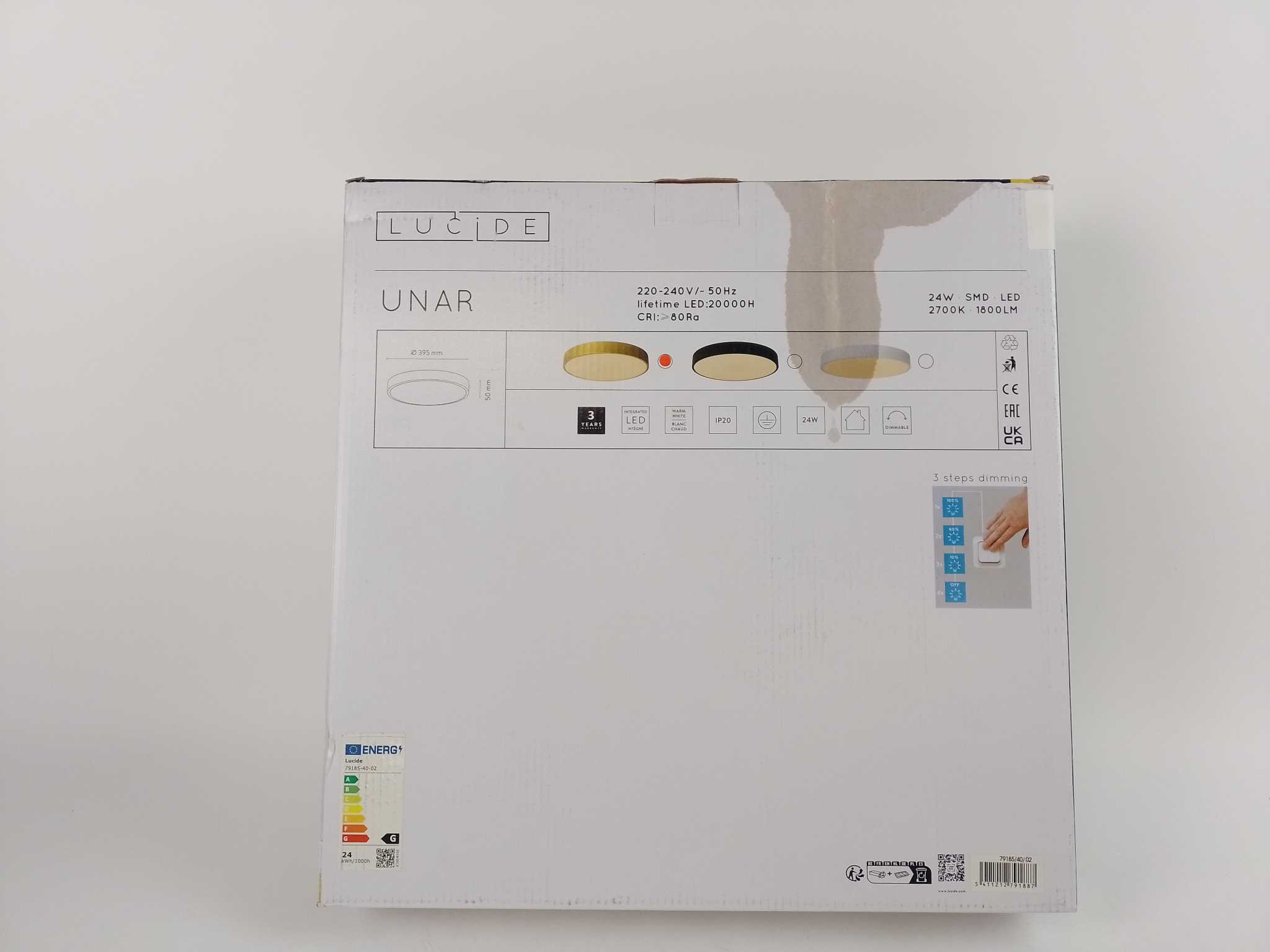 Lucide Plafondlamp Unar - Ø39,5 cm - Goud/Messing. Lucide Unar plafonnière Ø39,5 cm in mat goud brengt moderne elegantie met egaal, warm licht. De geïntegreerde 24W LED (2700K, 1550 lumen) is 3-staps dimbaar via je wandschakelaar. Slechts 5 cm hoog, ideaal voor lagere plafonds. Acryl diffuser en metalen basis garanderen brede 128° lichtspreiding zonder verblinding. Perfect als plafondlamp voor woonkamer, keuken of slaapkamer. Meegeleverd: driver en montagemateriaal. Energiezuinig, onderhoudsarm en eenvoudig te monteren; stijlvolle keuze voor dagelijkse verlichting met sfeer én functionaliteit. Duurzaam ontwerp past in elk interieur.
