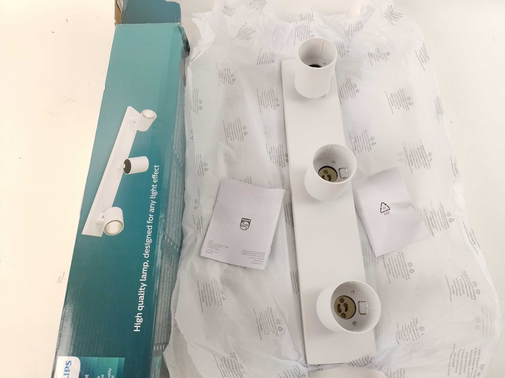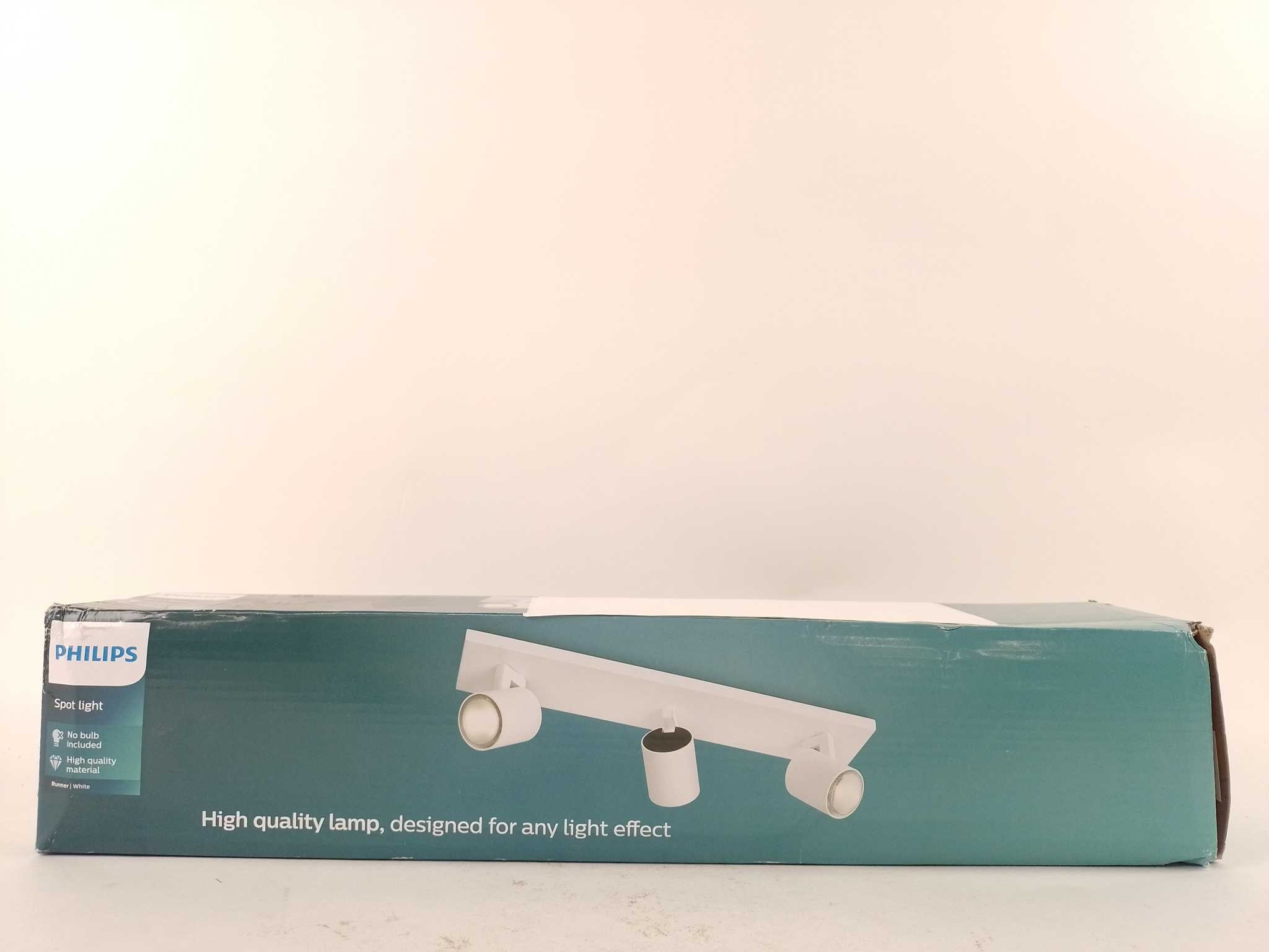 Philips Plafondrunner myLiving - 3-lichts - Wit. Ontdek de Philips Runner 3-lichts opbouwspot in wit: een strak metalen armatuur met drie richtbare spots voor gericht licht in keuken, hal of woonkamer. Voor GU10-lichtbronnen (max. 3×50 W) en dimbaar met geschikte wanddimmer. Eenvoudige opbouwmontage; compact formaat (ca. 48×9×10,9 cm) past overal. Duurzaam en tijdloos design dat elke ruimte modern accentueert. Meegeleverd: armatuur en montage-materiaal. Niet meegeleverd: GU10-lampen—kies zelf kleurtemperatuur en lichtsterkte.
