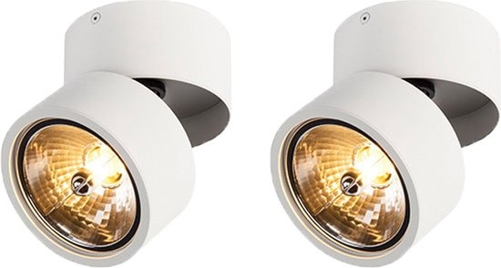 QAZQA Plafondspot 2 stuks - Go Nine Tubo - Wit. De QAZQA Go Nine Tubo plafondspot is een stijlvolle industriële opbouwspot met een Ø12 cm design in wit. Dankzij het kantelbare spotje richt je het licht precies waar je het nodig hebt. Geschikt voor E27 lic