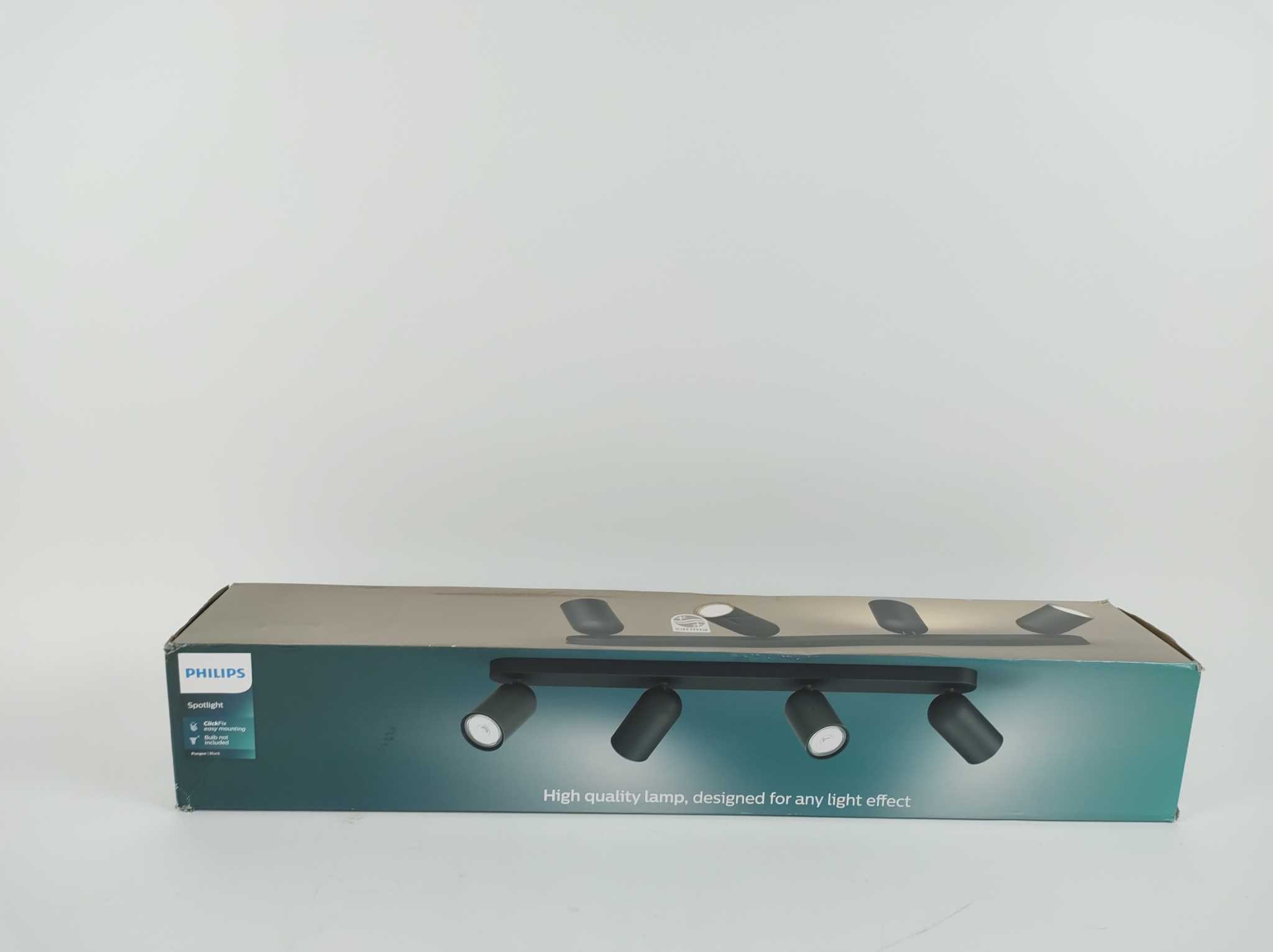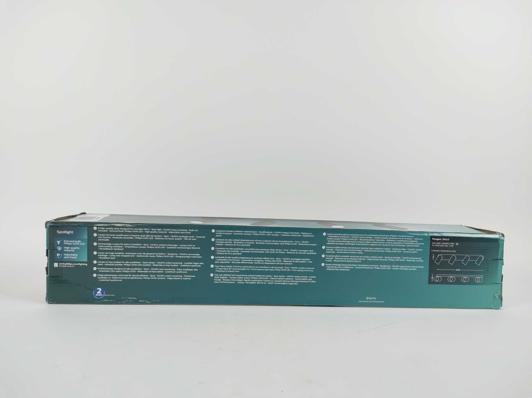 Philips Plafondspot Pongee 4-lichts - Zwart. De Philips Pongee opbouwspot heeft een elegant zwart ontwerp met vier verstelbare lichtbronnen, perfect voor gerichte verlichting in diverse ruimtes. De lamp is compatibel met verschillende lichtbronnen, waaronder LED, en biedt energiezuinigheid. Met een eenvoudige installatie en veelzijdigheid in gebruik, is deze spot ideaal voor woonkamers, keukens of werkruimtes. Bovendien voegt het een moderne uitstraling toe aan elk interieur. Type product: Oppervlak-spotverlichting. Fitting/voet-type: GU10. Geschikt voor gebruik binnen. Aantal lampen: 4 gloeilamp(en), Type lamp: LED. Internationale veiligheidscode (IP): IP20. Dimbaar. Ingangsspanning: 220-240 V. Kleur van het product: Zwart. Afmetingen: 63 x 12 x 8 cm. Gewicht: 1,4 kg.
