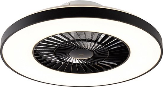 QAZQA Plafondventilator Climo LED - Zwart. De QAZQA Climo is een moderne plafondventilator met lamp in zwart (Ø 60 cm) voor slaapkamer, woonkamer en keuken. De stille motor en 3 snelheden zorgen voor aangename koeling. Het geïntegreerde, dimbare LED-licht biedt instelbare kleurtemperatuur voor sfeer en functionaliteit. Inclusief afstandsbediening, timer en zomer-/winterstand voor efficiënt comfort. Wordt geleverd met bevestigingsmateriaal en handleiding. Stijlvol, compact en energiezuinig; perfecte all-in-one oplossing voor frisse lucht en goed licht, dagelijks comfort thuis.
