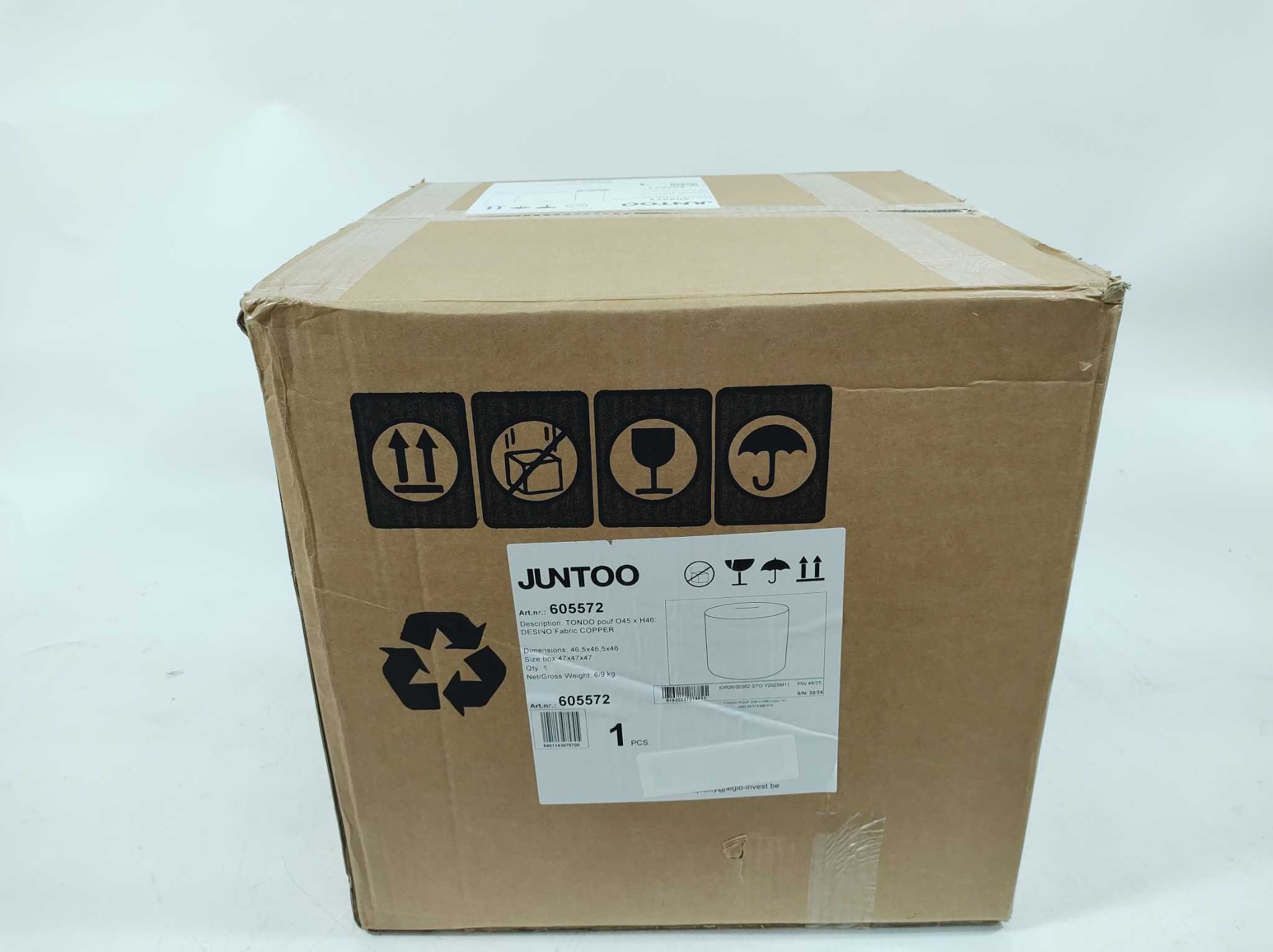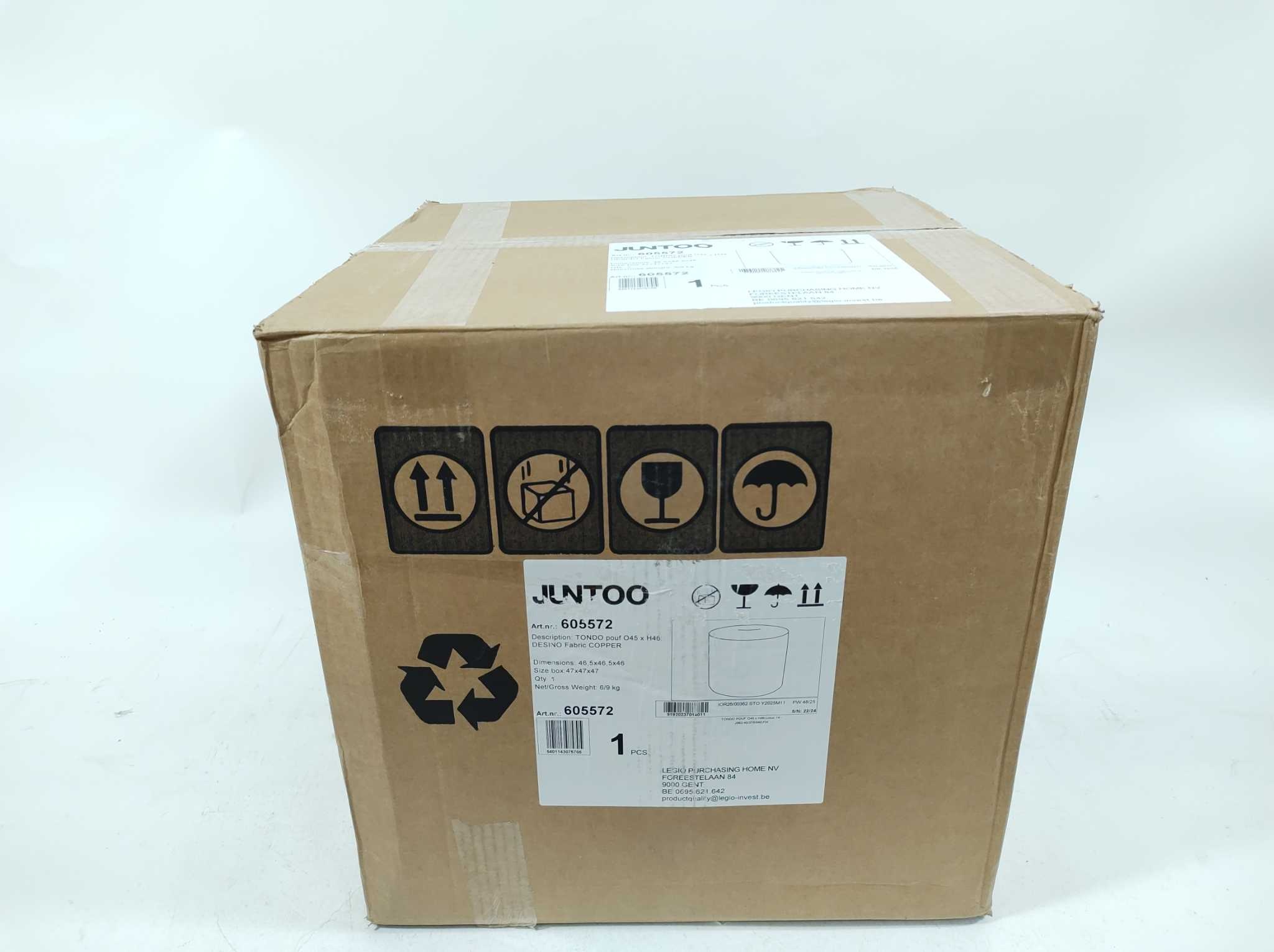 Juntoo Poef Tondo - Ø45x46 cm - Koper. De Tondo poef in koperkleurige Desinio stof is een stijlvolle aanvulling voor woonkamer, slaapkamer of zithoek. De ronde vorm en warme copper tint geven direct sfeer, terwijl de zwarte poten zorgen voor een modern contrast. Met een formaat van 45 cm doorsnee en 46 cm hoog is deze poef ideaal als extra zitplek, voetenbank of decoratief accent. Deze compacte designpoef combineert comfort met uitstraling en past moeiteloos in diverse moderne interieurs voor dagelijks gebruik thuis met een warme en luxe look.