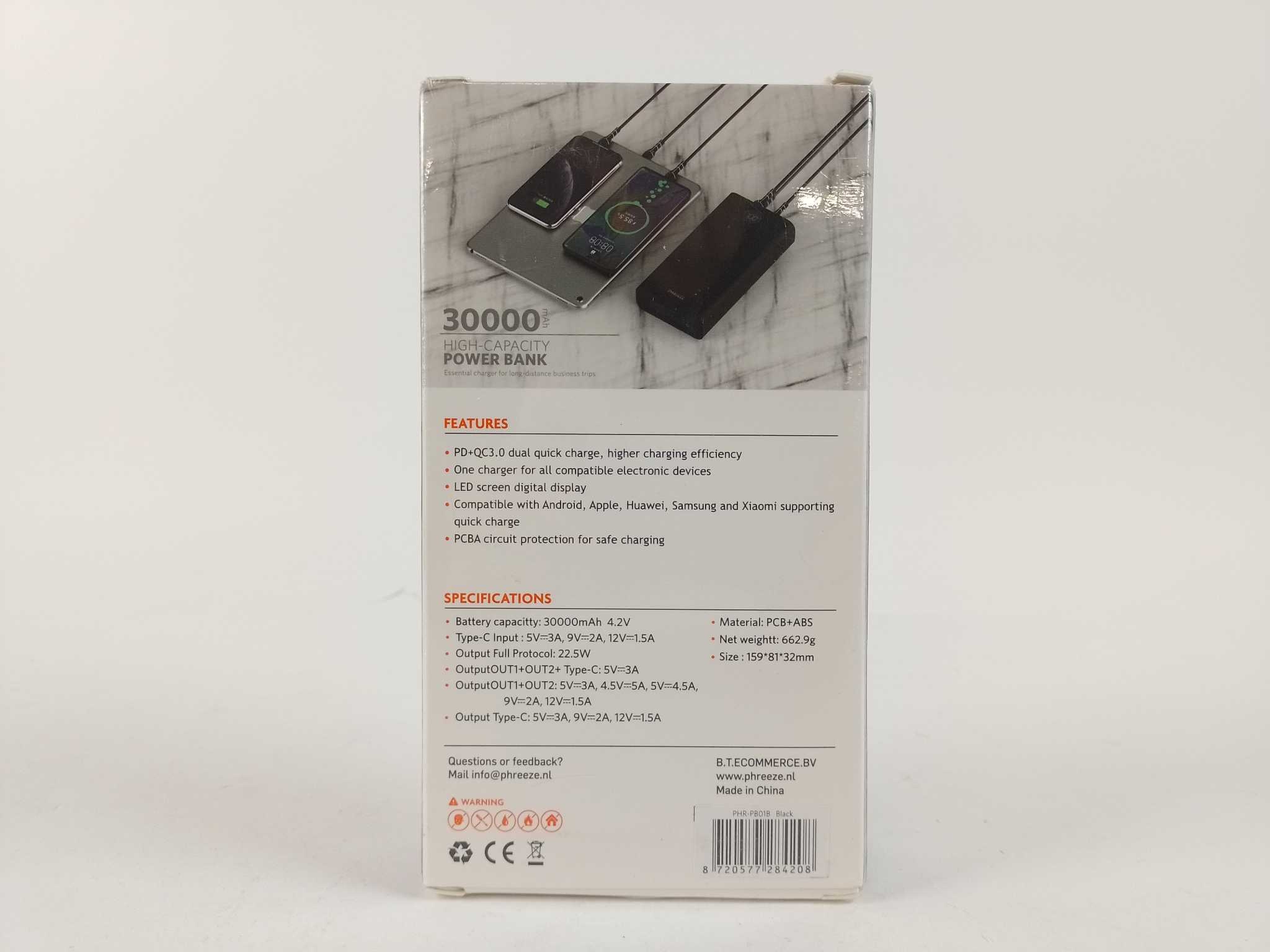 Phreeze Powerbank 30000 mAh - Zwart - 10%