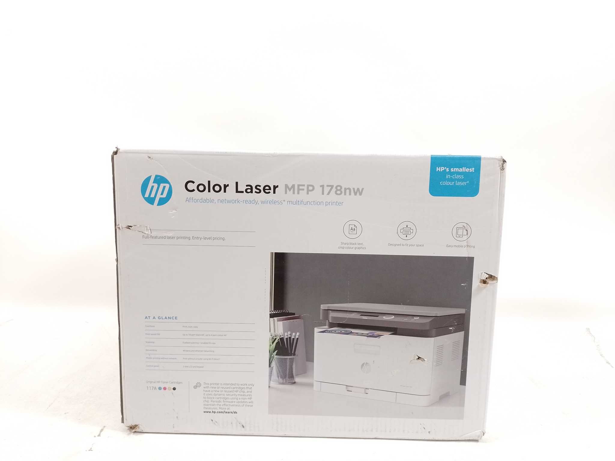 HP Printer Color Laser MFP 178nw. De HP Color Laser MFP 178nw is een compacte all-in-one voor thuis of klein kantoor. Print, kopieer en scan in kleur met 600×600 dpi, tot 18 ppm (zwart). Verbinding via Wi-Fi, Ethernet of USB; mobiel printen met de HP Smar