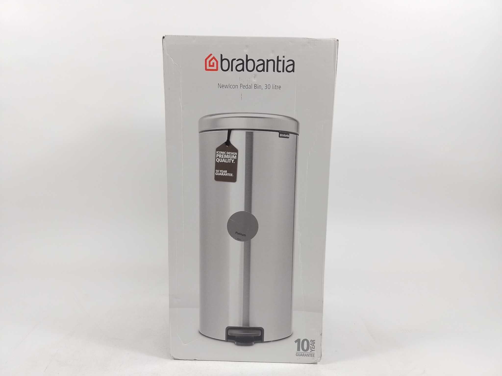 Brabantia Prullenbak NewIcon 30L - Platinum. Deze stijlvolle pedaalemmer van 30 liter combineert elegantie met gebruiksgemak. Dankzij het Soft-Close systeem sluit het deksel geruisloos, terwijl het stevige pedaal licht te bedienen is. De uitneembare kunst