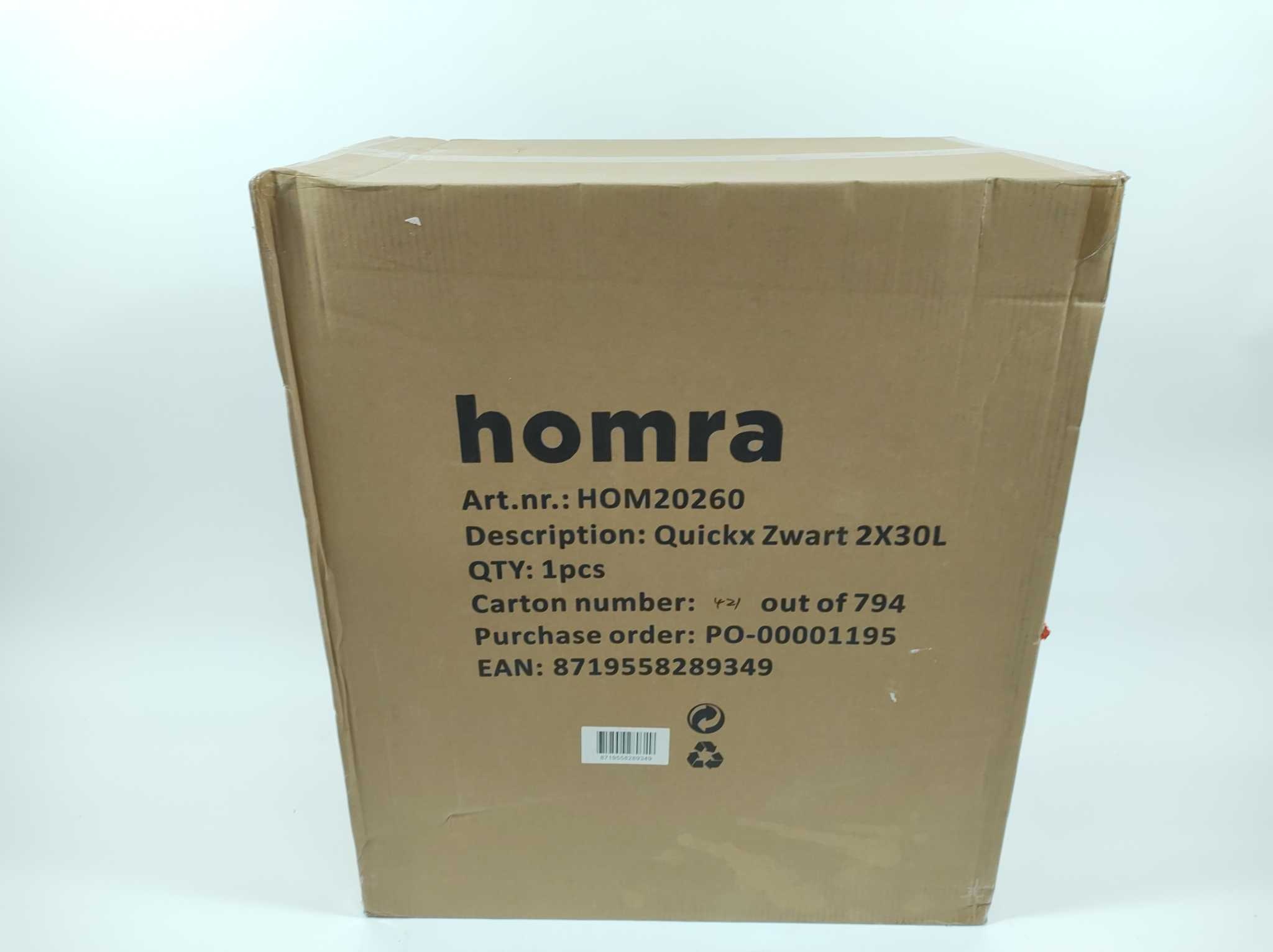 Homra Prullenbak Quickx 60L - Zwart. De Homra Quickx duo prullenbak 60 liter is een stijlvolle pedaalemmer voor slimme afvalscheiding in huis of op kantoor. Met twee compartimenten van 30 liter houd je restafval, plastic of papier netjes gescheiden zonder