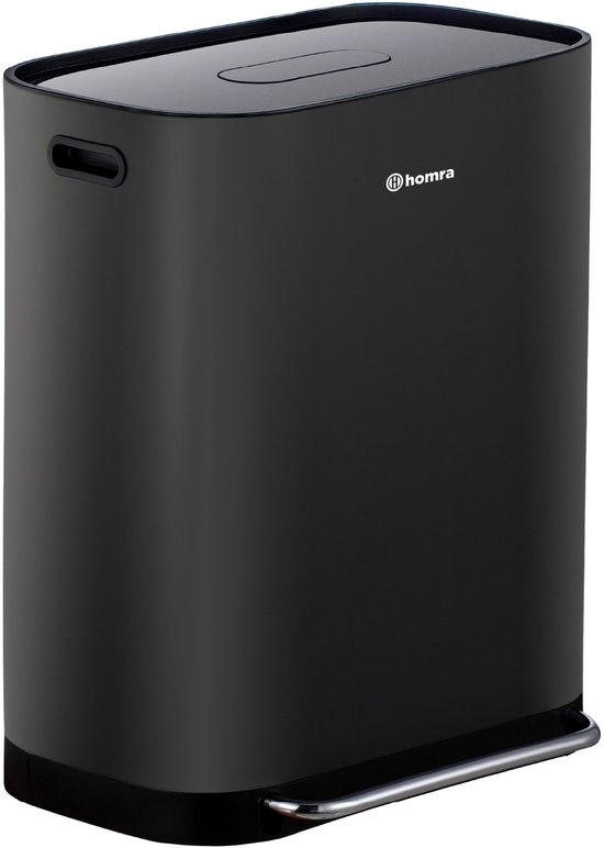 Homra Prullenbak Rockx 60L - Zwart. De Homra Rockx duo pedaalemmer 60 liter is een stijlvolle afvalscheidingsprullenbak voor keuken, kantoor of bijkeuken. Met twee ruime compartimenten van 30 liter scheid je afval eenvoudig en overzichtelijk. Het hygiënische voetpedaal, de losse binnenemmers en het geïntegreerde geurfilter zorgen voor extra gebruiksgemak. Dankzij de soft-close deksels en het zwarte RVS design oogt deze pedaalemmer modern, strak en luxe. Perfect voor wie praktisch afval wil scheiden met comfort, duurzaamheid en een nette uitstraling in iedere ruimte thuis, elke dag opnieuw.