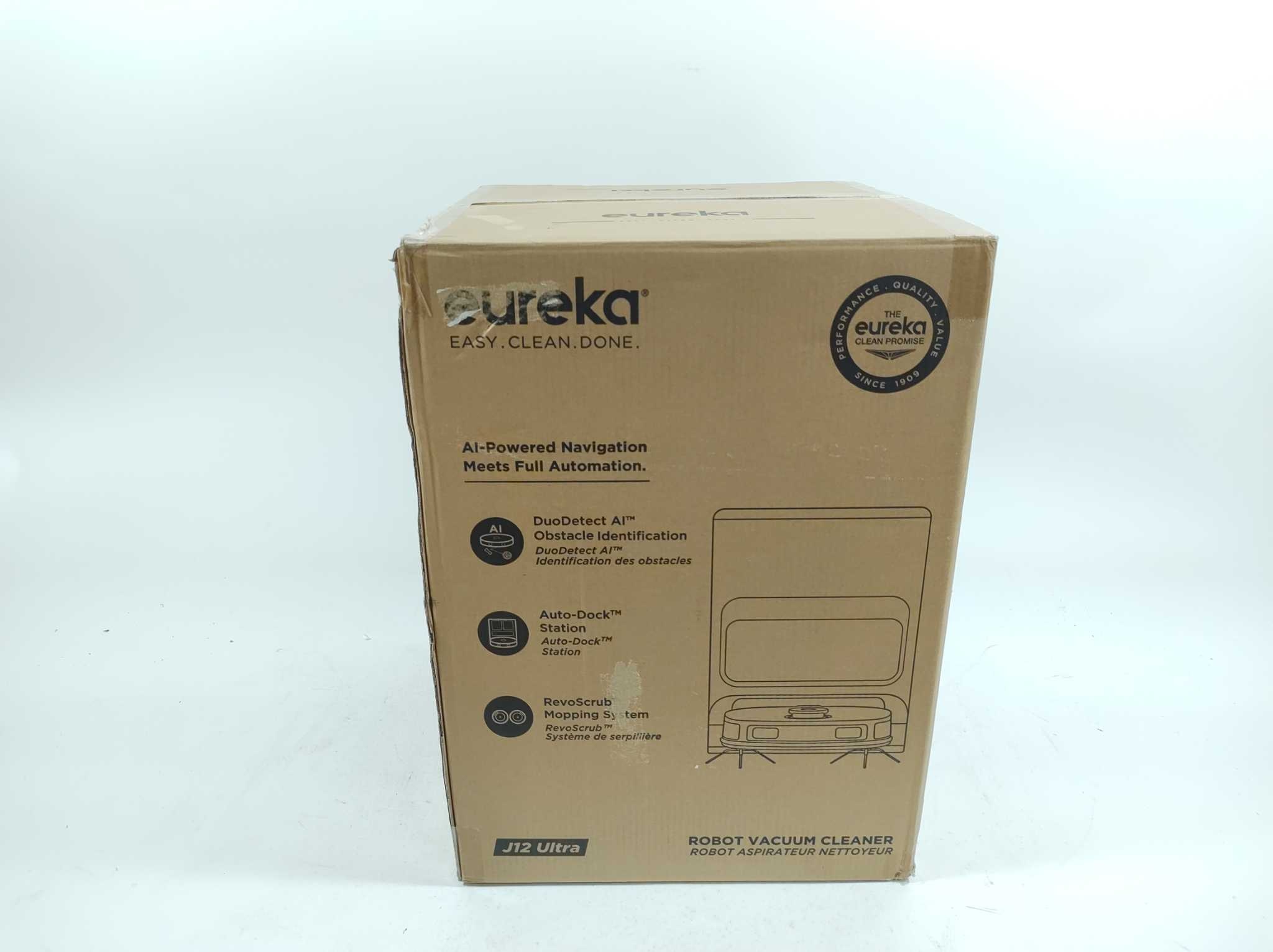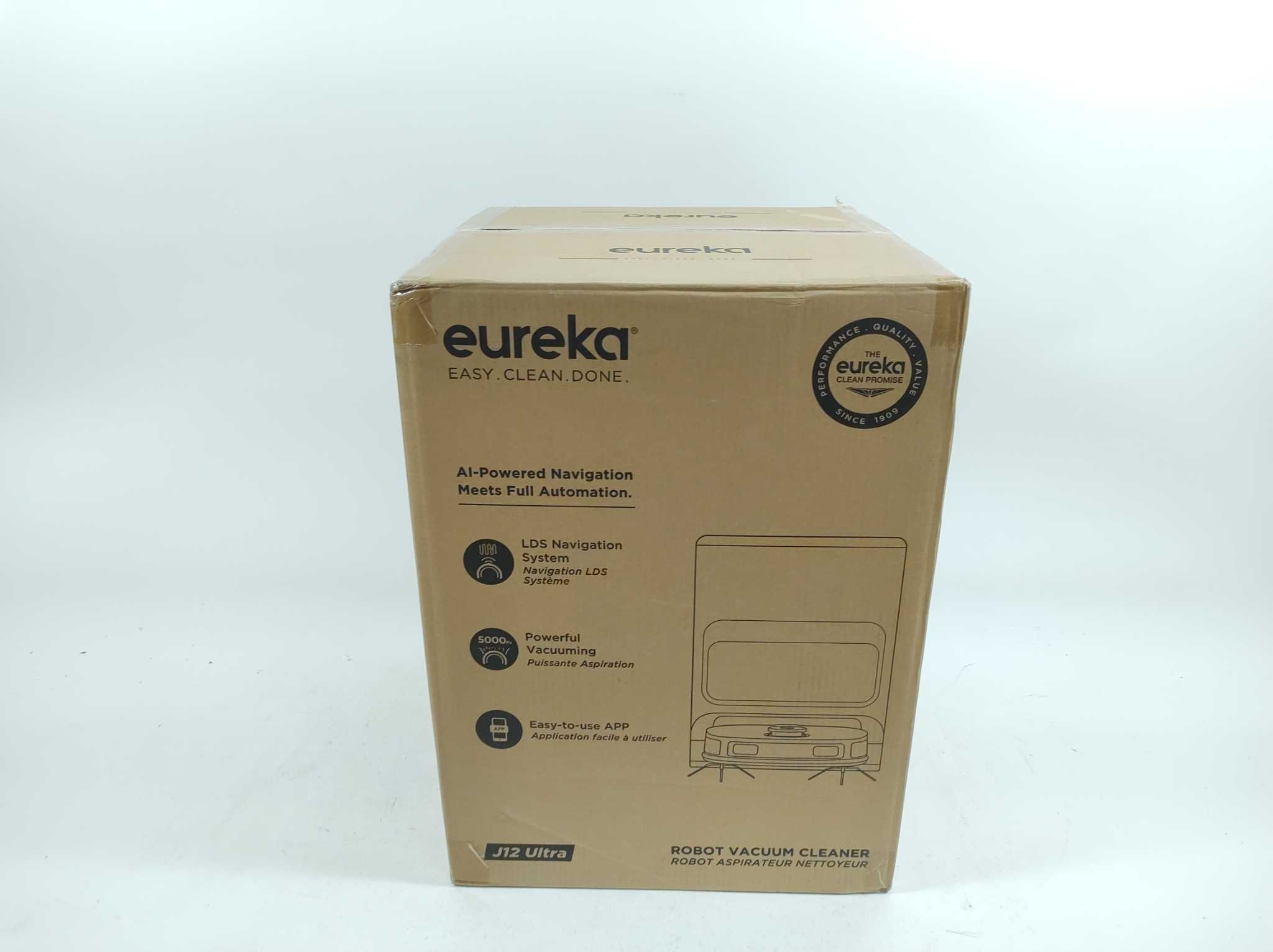 Eureka Robotstofzuiger J12 Ultra - Zwart. De Eureka J12 Ultra is een slimme robotstofzuiger en dweil met all-in-one zelfreinigend station. Dankzij AI 3D-obstakeldetectie en dubbele LiDAR navigeert hij nauwkeurig, terwijl de roterende mop hardnekkig vuil aanpakt. Kies kamers, zones of no-go’s via de app en geniet van automatisch legen, wassen en drogen. Meegeleverd: zelfreinigend station, twee zijborstels, hoofdrolborstel, HEPA-filter, dweilpads, twee stofzakken en schoonmaakborstel. Krachtige zuigkracht, huisdiervriendelijk en geschikt voor harde vloeren én tapijt. Dagelijks schoon.