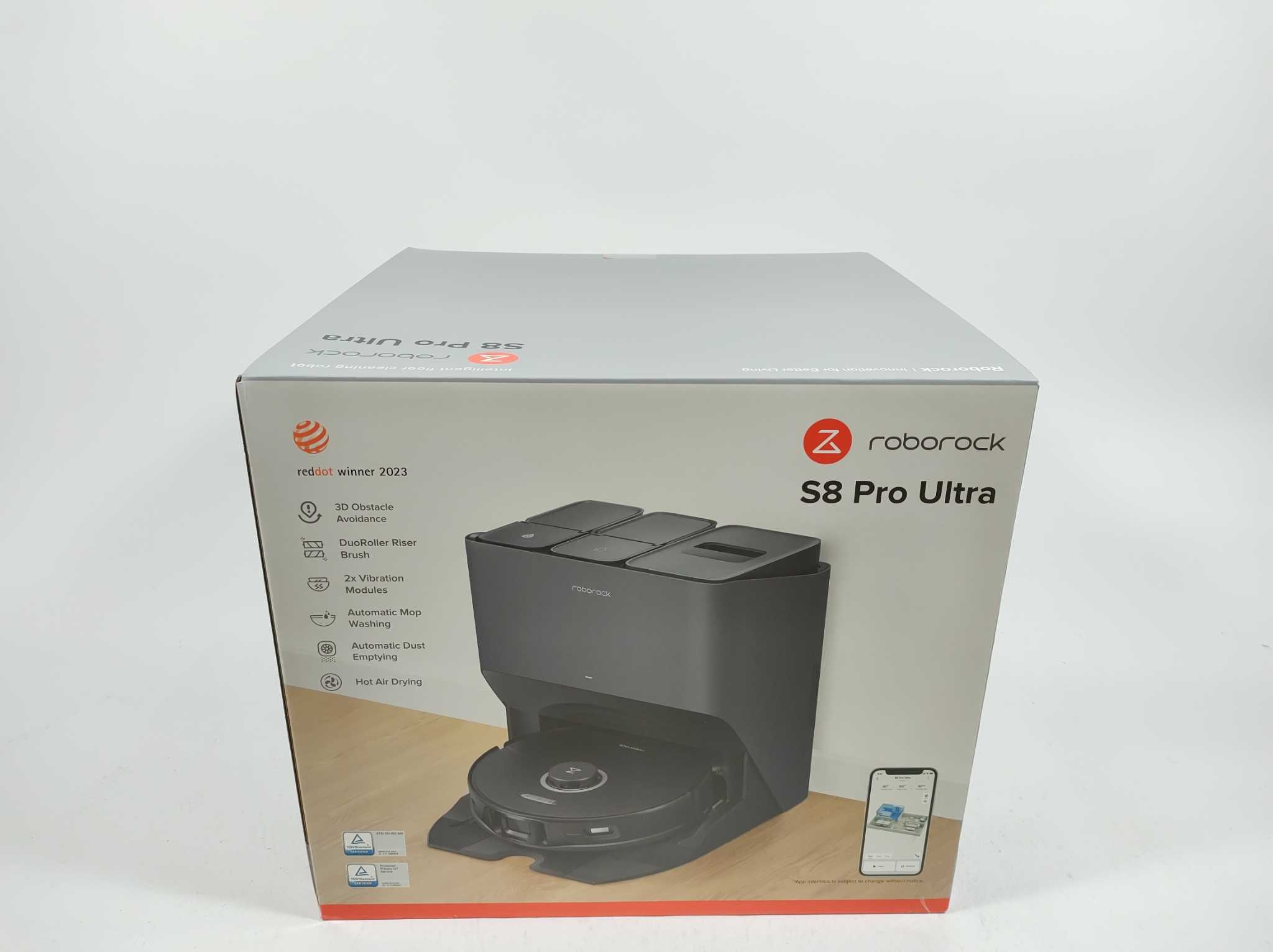 Roborock Robotstofzuiger S8 Pro Ultra - Zwart. De Roborock S8 Pro Ultra is een toekomstgerichte robotstofzuiger-met-dweil, uitgerust met de all-in-one RockDock Ultra zelfreinigingsstation: wapent u zelf–leeg, mop-was, mop-droog, stofbak-leeg en water bijvult zonder inspanning. Dankzij 6 000 Pa zuigkracht, DuoRoller Riser™ dual brush en VibraRise 2.0 systems garandeert hij diepe reiniging. Met LiDAR-navigatie, 3D obstakeldetectie, 180 min autonomie en app-/stemsturing (Google, Alexa), biedt hij effectieve, zorgeloze reiniging in elk seizoen.