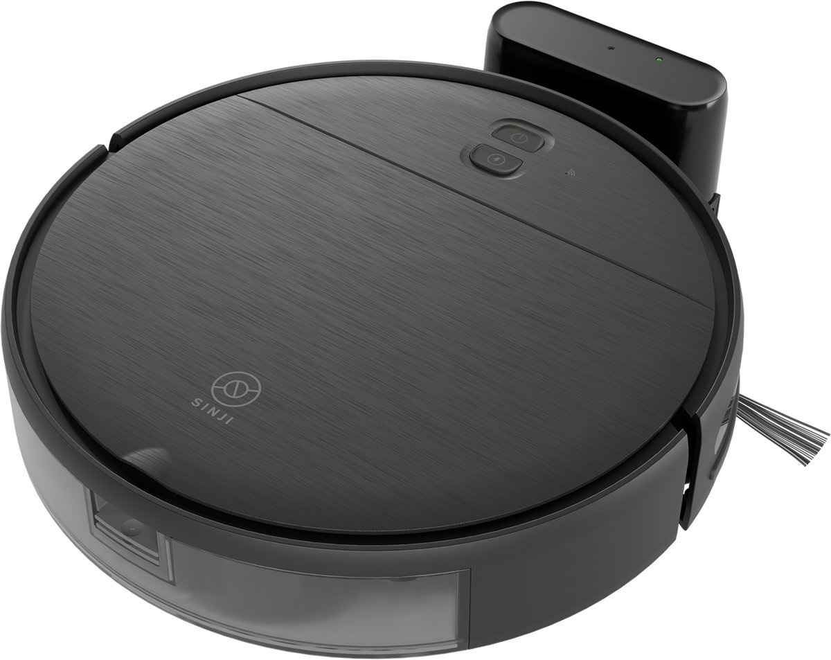 Sinji Robotstofzuiger SIRC-0300 - Zwart. De Sinji Smart Robotstofzuiger Gyro met dweilfunctie houdt je vloeren automatisch schoon. Met systematische gyro-navigatie, appbediening (Alexa/Google) en meerdere schoonmaakmodi reinigt hij efficiënt harde vloeren
