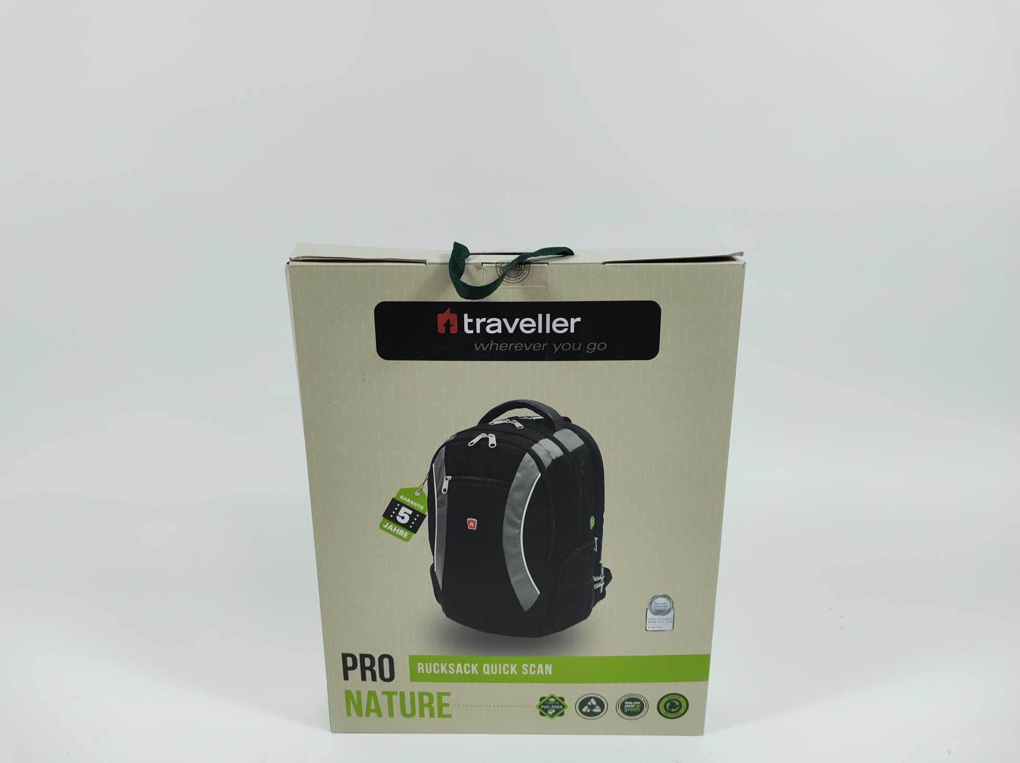 Traveller Rugzak PROnature - 48cm - Zwart. De Traveller PROnature Quick Scan rugzak is een functionele zwarte reisrugzak voor werk, school en onderweg. Het hoofdvak bevat een laptopvak tot 17 inch dat 180 graden opent, ideaal voor snelle controles op reis