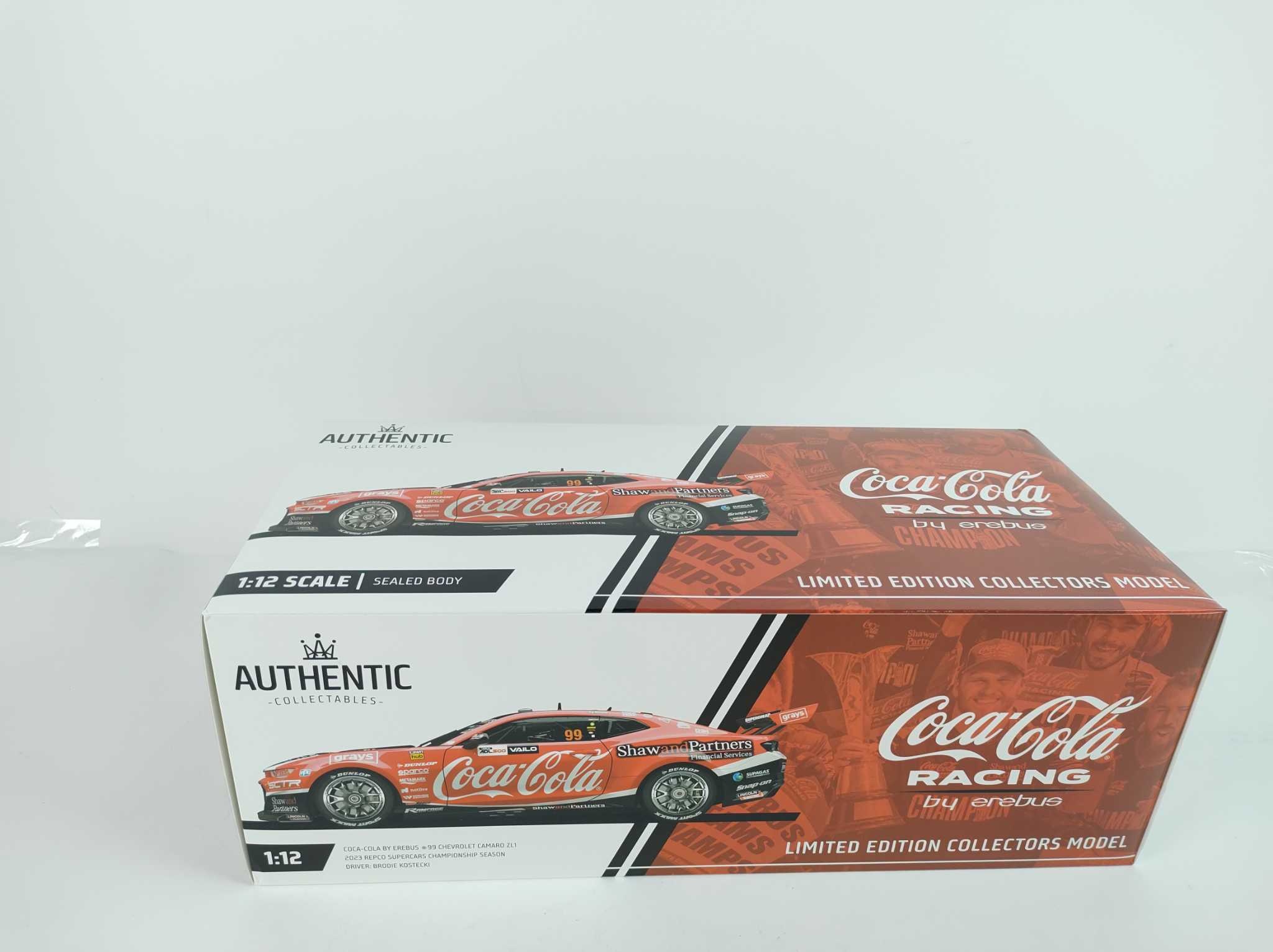 Authentic Models Schaalmodel 1:12 - Chevrolet Camaro ZL1 #99 - 2023. Deze 1:12 schaalmodel van de Coca-Cola Racing by Erebus Chevrolet Camaro ZL1 #99 viert de 2023 Supercars Championship-titel van Brodie Kostecki in stijl. Het model is uitgevoerd in hoogw