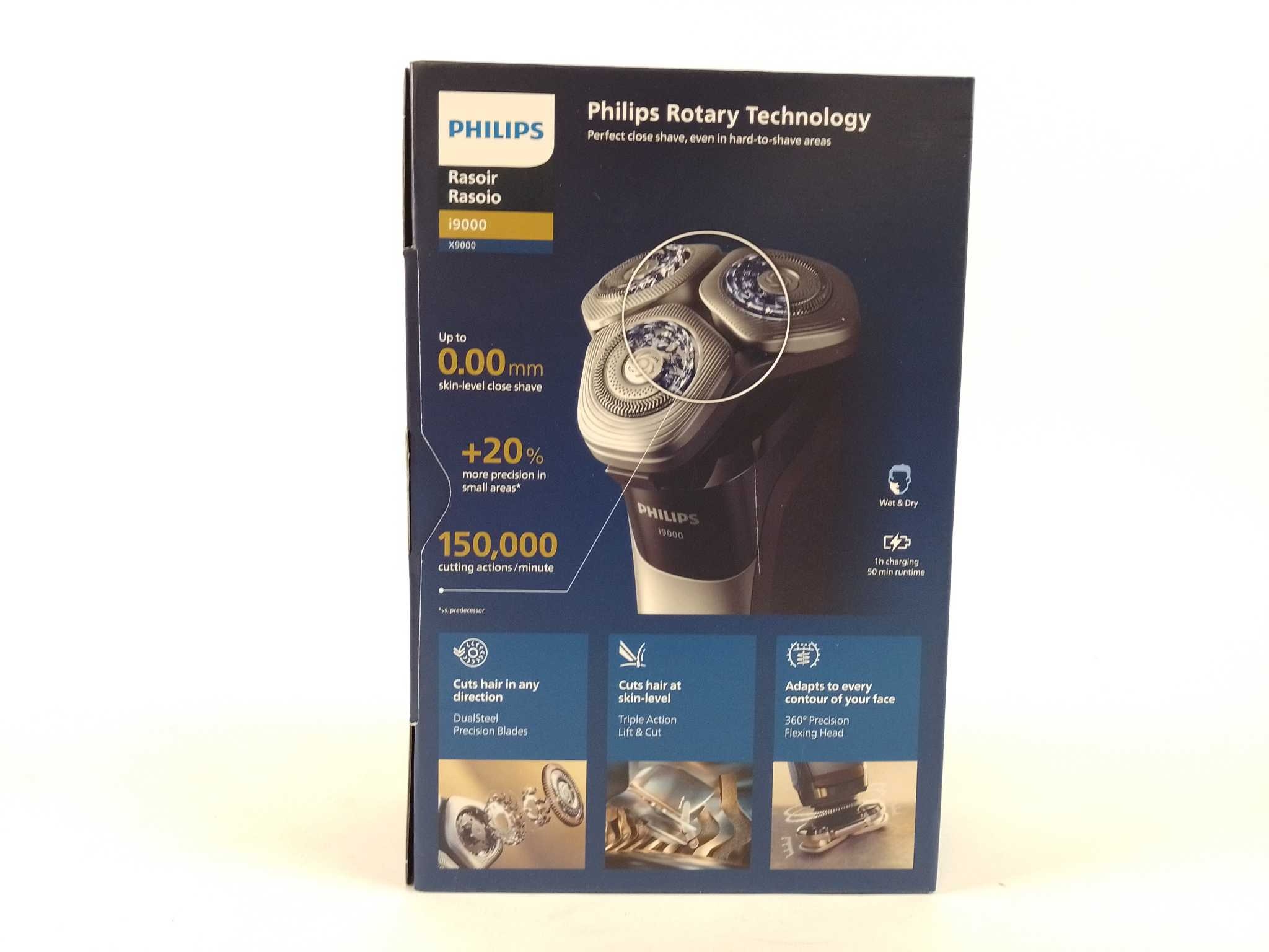 Philips Scheerapparaat Shaver i9000 - X9000/10. De Philips Shaver i9000 X9000/10 levert ultragladd scheren met SkinIQ. Triple Action Lift & Cut en Dual SteelPrecision-mesjes tillen en snijden haren efficiënt, terwijl 360° flexkoppen en Pressure Guard-ledring huidirritatie verminderen. Nat/droog, volledig afspoelbaar. Power Adapt past vermogen automatisch aan jouw baarddichtheid aan. Tot 60 min draadloos, 1 uur laden, snelle 5-min boost. Inclusief laadstandaard met USB-kabel, beschermkap en handleiding. Premium scheercomfort met precisiestyler voor bakkebaarden en snor, elke dag strak resultaat.