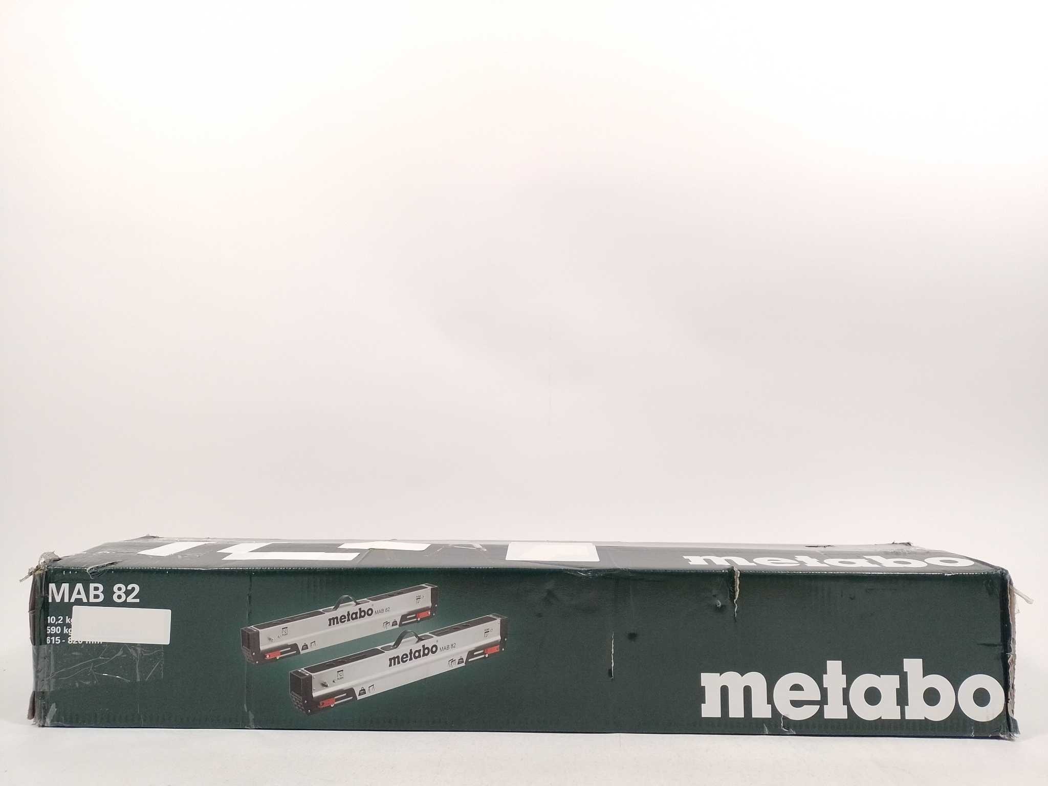 Metabo Schragenset MAB 82 - 2 stuks. De Metabo MAB 82 werkbokken-set levert stabiele ondersteuning op bouwplaats en werkplaats. Twee stalen bokken met verzinkte afwerking dragen tot 590 kg per stuk en zijn in hoogte verstelbaar van 615–820 mm. Snel op te