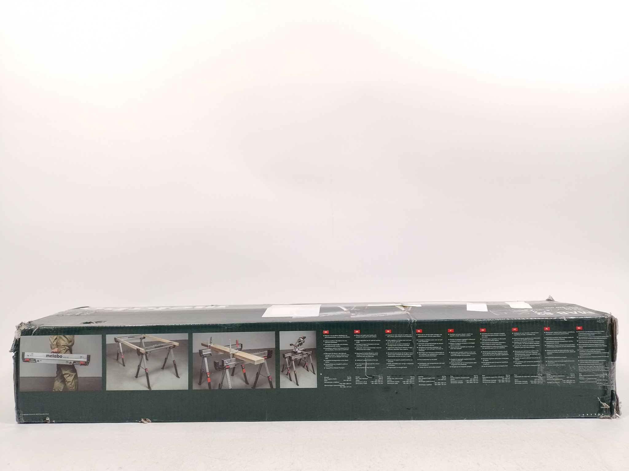 Metabo Schragenset MAB 82 - 2 stuks. De Metabo MAB 82 werkbokken-set levert stabiele ondersteuning op bouwplaats en werkplaats. Twee stalen bokken met verzinkte afwerking dragen tot 590 kg per stuk en zijn in hoogte verstelbaar van 615–820 mm. Snel op te klappen, met draaghandgreep en zwenkvoeten voor ongelijke ondergrond. Handige bevestigingsgaten voor lijmklemmen en machines. Meegeleverd: 2 werkbokken en houten koppelbalken. Ideaal voor zagen, schuren, monteren en mobiel gebruik. Compact opgevouwen: 110×980×142 mm. Licht en duurzaam.