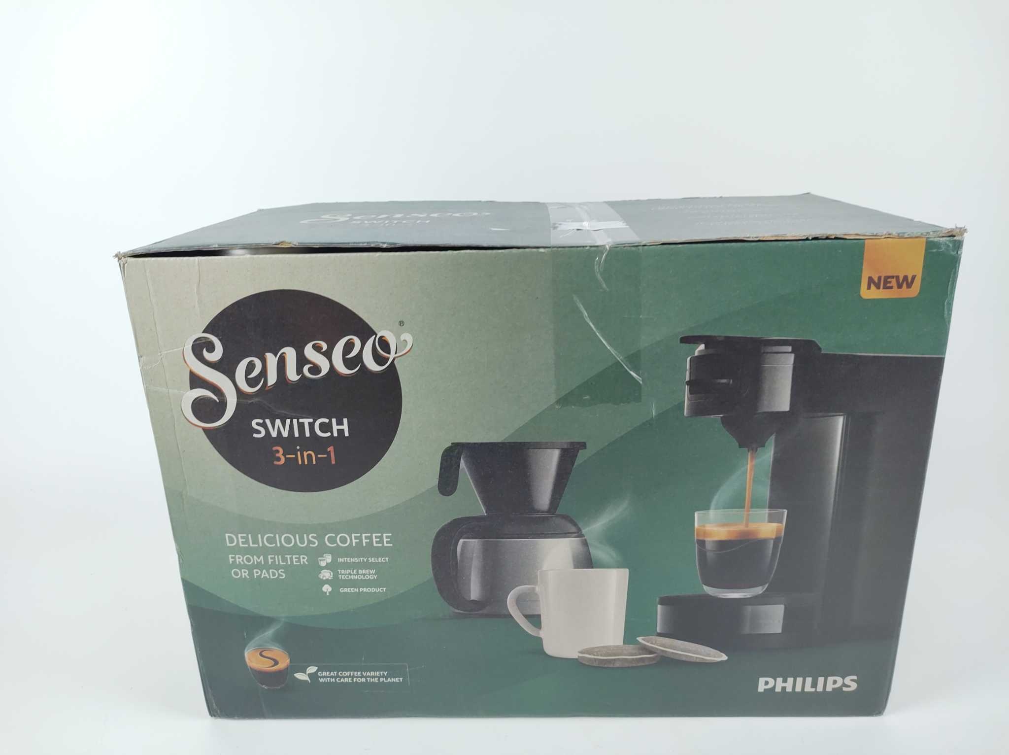 Philips Senseo Switch HD6594/62. Philips Senseo Switch HD6594/62 is een 2-in-1 koffiezetapparaat voor koffiepads én filterkoffie. Zet in minder dan een minuut één of twee kopjes met cremalaag, of vul de thermoskan met tot 7 koppen voor bezoek. DualBrew en