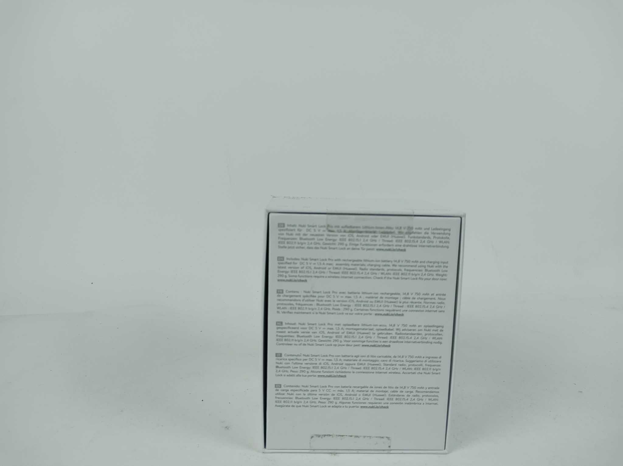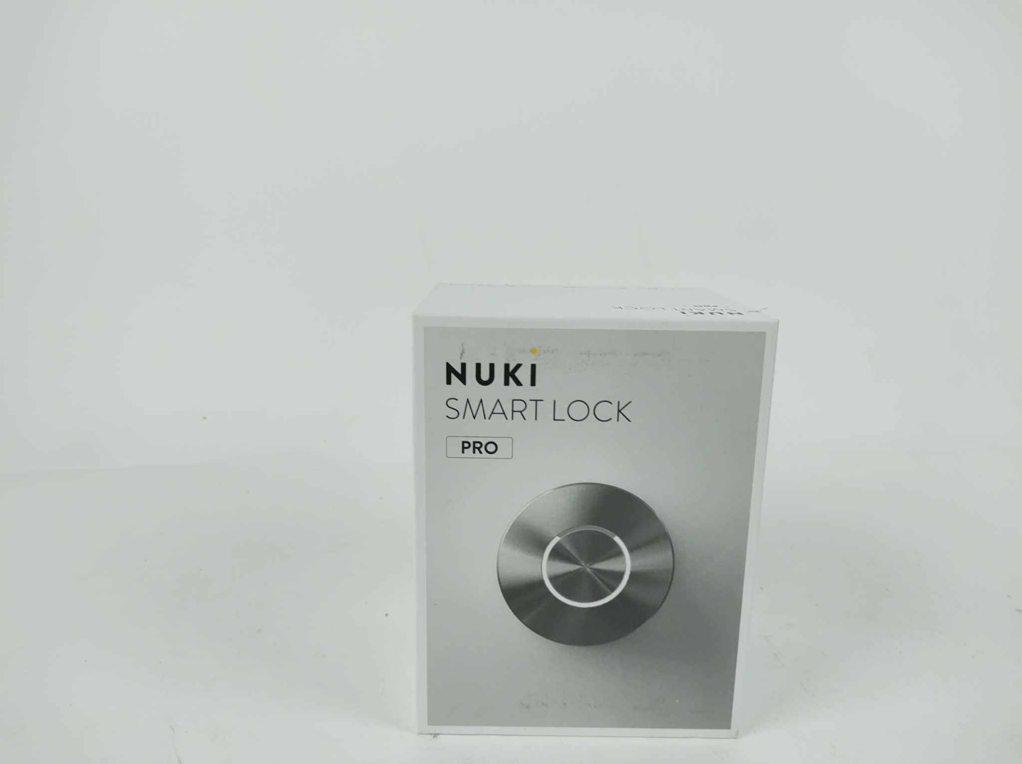 Nuki Smart Lock Pro. Nuki Smart Lock Pro (5e generatie) maakt je voordeur slim met ingebouwde wifi, Bluetooth en Matter over Thread. De nieuwe borstelloze motor biedt drie snelheden en stille, razendsnelle Auto Unlock. Bedien via app, smartwatch, Apple Home, Google en Alexa, ook op afstand. Inclusief Smart Lock Pro, montageplaat, zwarte en witte ring, USB-C oplaadkabel (2 m), inbussleutel, bevestigingsmateriaal en handleiding. Oplaadbare accu en deur-status via optionele sensor. Eenvoudige, boorloze installatie op bestaande cilinder voor veilig, flexibel toegangsbeheer.