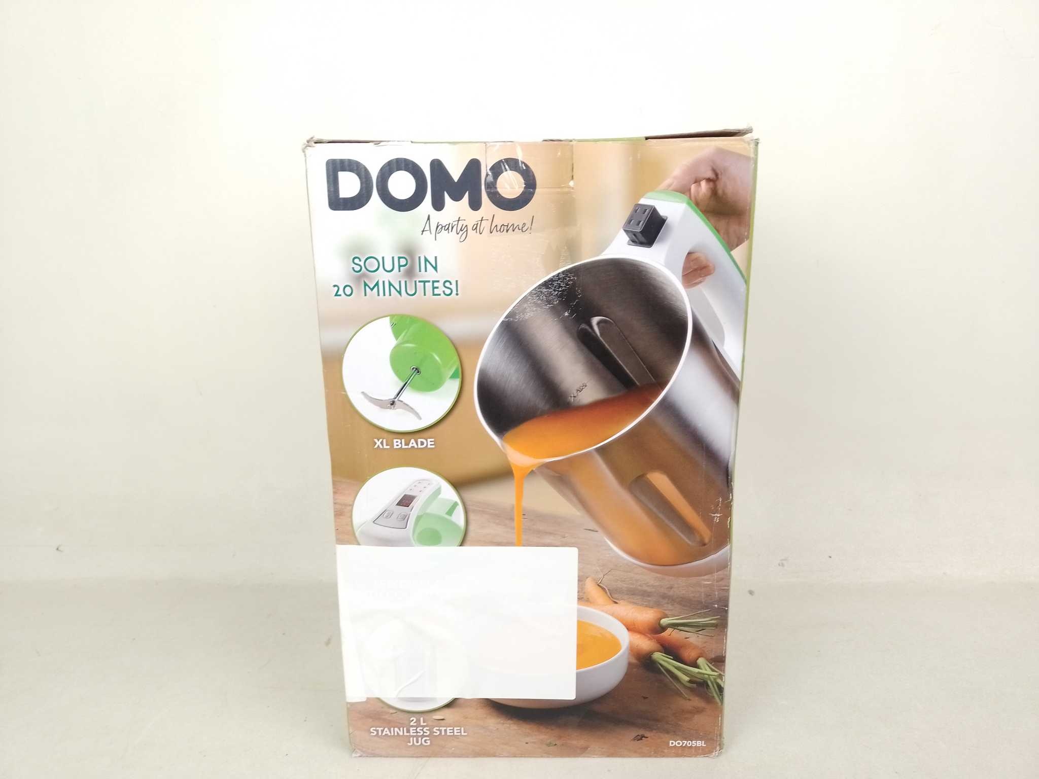 Domo Soepmaker 2L - DO705BL. Met de Domo DO705BL soepmaker XL maak je in ±20 minuten verse soep, smoothies of confituur. De roestvrijstalen kan van 2 liter is ideaal voor het hele gezin en blijft automatisch warm na afloop. Kies uit 6 programma’s: smooth,