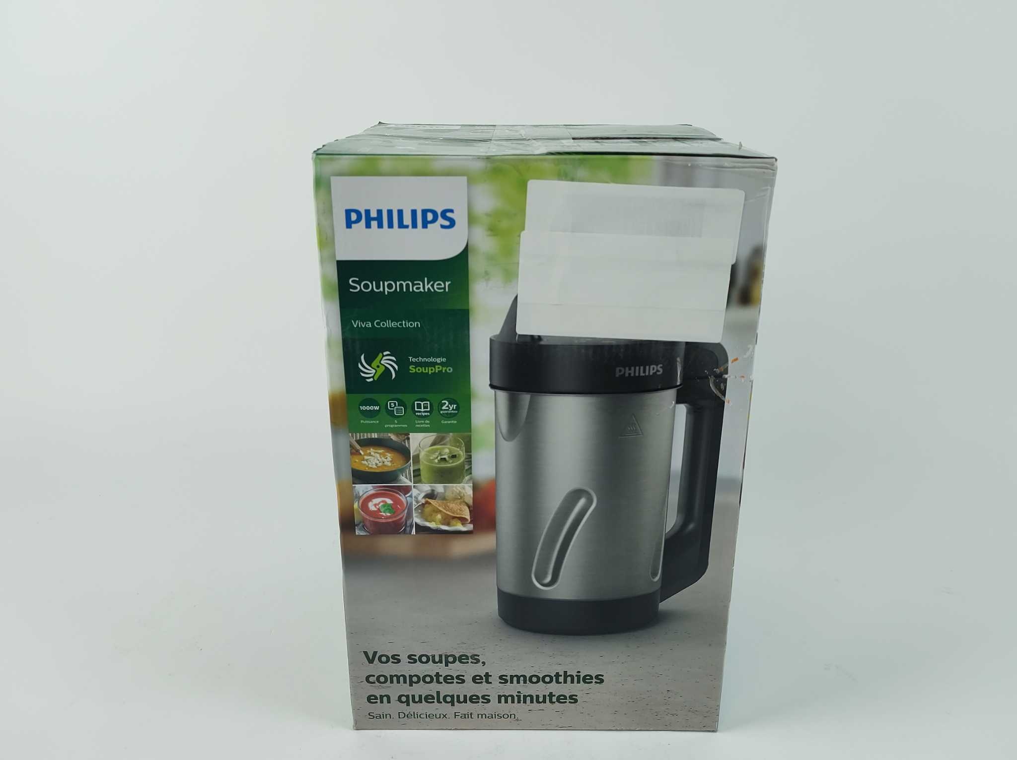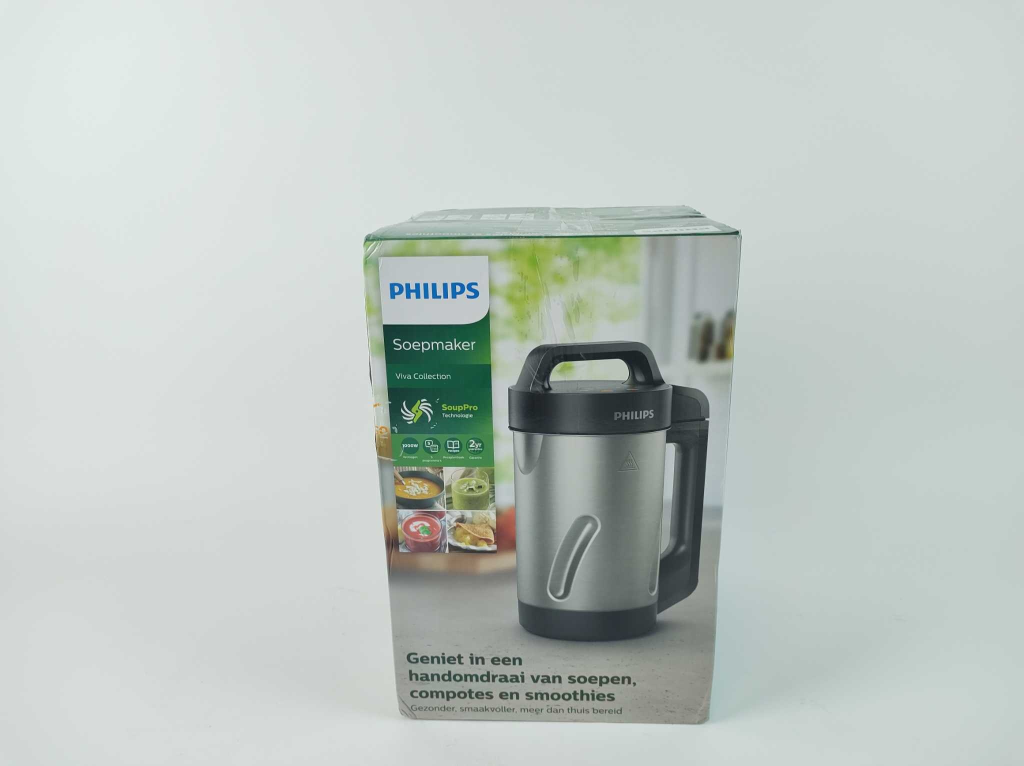 Philips Soepmaker Viva - HR2203/80. Met de Philips Viva SoupMaker HR2203/80 maak je in één kan verse soep, compote of smoothies. Het 1000W verwarmingssysteem en het Z-vormige mes koken en mixen tegelijk, zodat je soep binnen 18 minuten klaar is. De 1,2 li