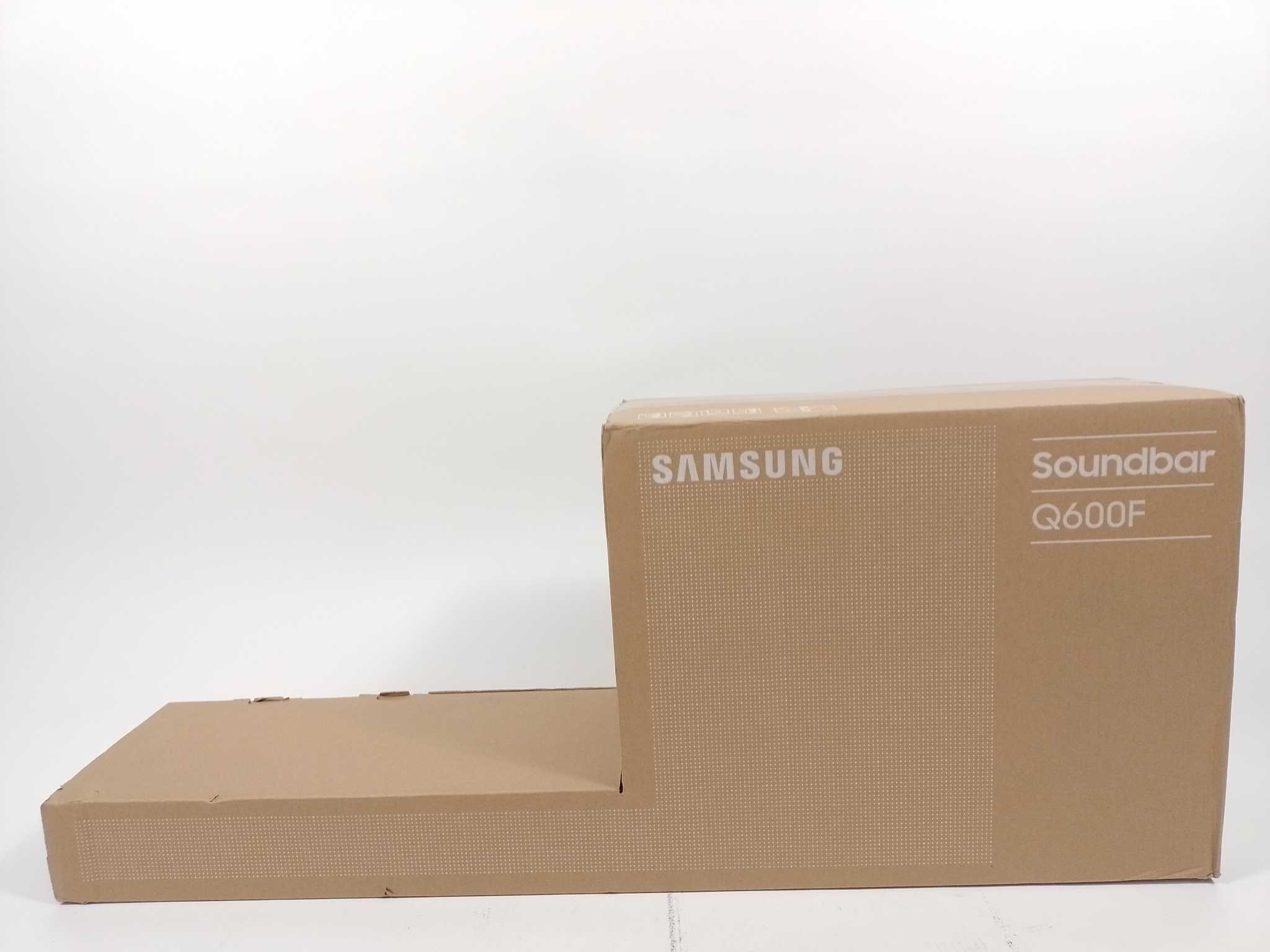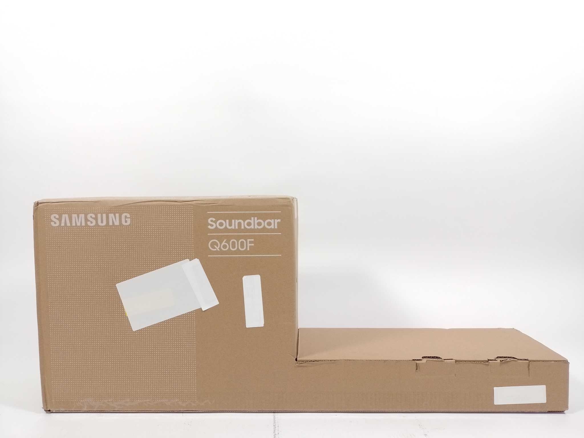 Samsung Soundbar met Subwoofer - HW-Q600F. Til films, series en games naar bioscoopniveau met de Samsung HW-Q600F soundbar. Het echte 3.1.2-kanaals systeem met opwaarts gerichte speakers levert ruimtelijk Dolby Atmos en DTS:X, terwijl de draadloze subwoofer diepe, strakke bas toevoegt. Q-Symphony en Adaptive Sound stemmen audio slim af op je Samsung-tv en de ruimte. Aansluiten gaat eenvoudig via HDMI eARC, extra HDMI-in of Bluetooth. Game Mode Pro geeft directe effecten zonder vertraging en extra heldere dialogen, altijd. Inclusief subwoofer, afstandsbediening met batterijen, voedingskabels, muurmontageset en handleiding.