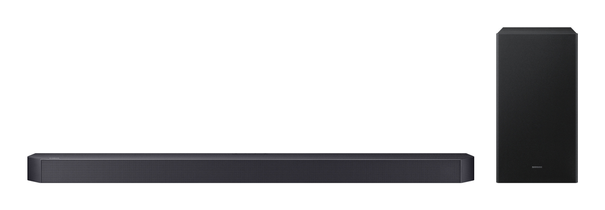 Samsung Soundbar met Subwoofer - HW-Q600F. Til films, series en games naar bioscoopniveau met de Samsung HW-Q600F soundbar. Het echte 3.1.2-kanaals systeem met opwaarts gerichte speakers levert ruimtelijk Dolby Atmos en DTS:X, terwijl de draadloze subwoof