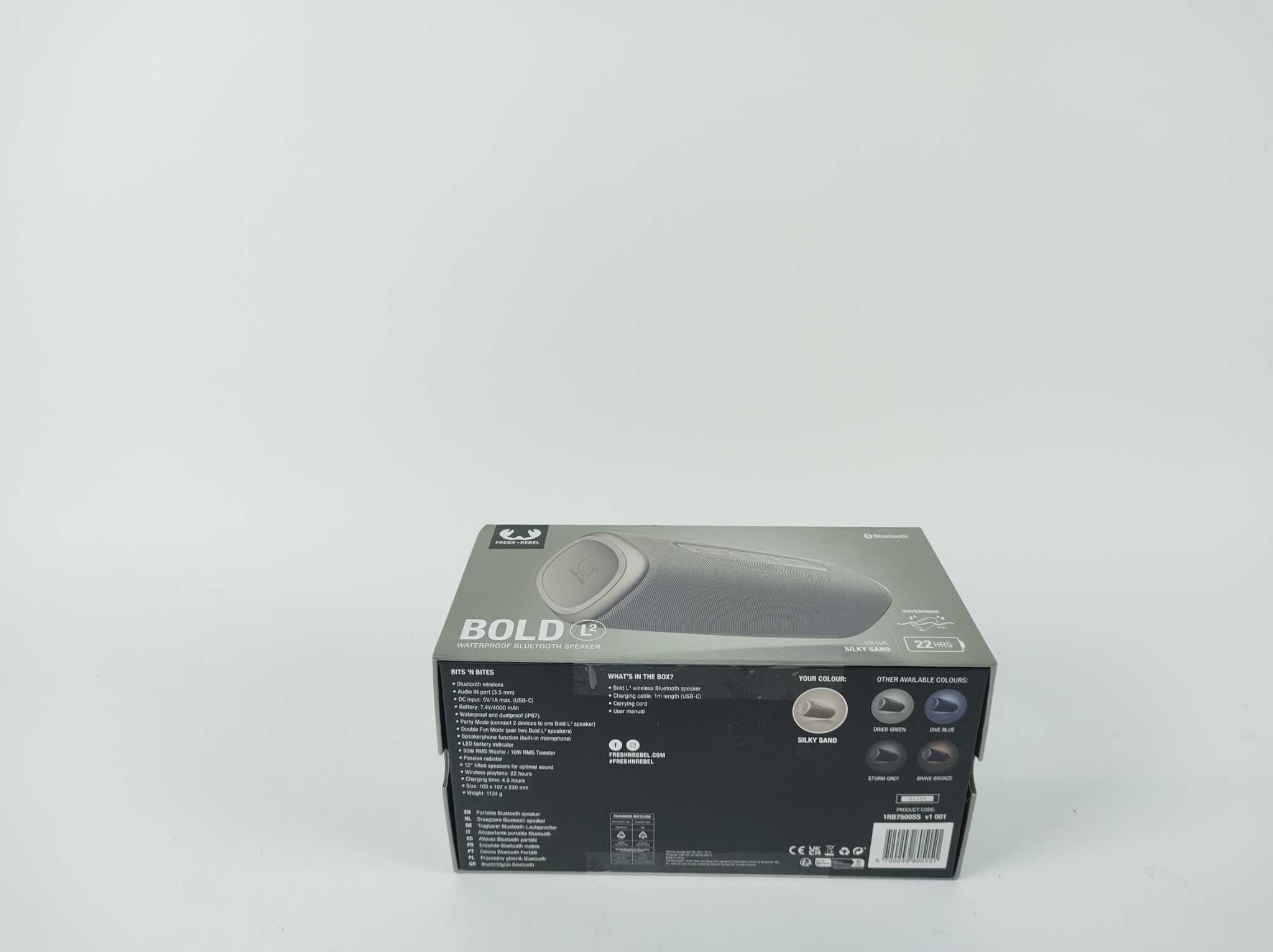 Fresh 'n Rebel Speaker Bold L2 - Silky Sand. Neem groots geluid overal mee met de Fresh ’n Rebel Bold L2 Bluetooth speaker in Silky Sand. De 40W output met gekantelde driver levert diepe bas en heldere tonen, binnen of buiten. Dankzij IP67 is hij stof- en waterdicht en de accu speelt tot 22 uur. Koppel twee telefoons via Party Mode of verbind twee speakers voor stereo. Met Bluetooth 5.0 en ingebouwde microfoon bel je handsfree, terwijl het stevige design tegen stoten kan. Inclusief draagkoord, USB-naar-USB-C oplaadkabel en handleiding.