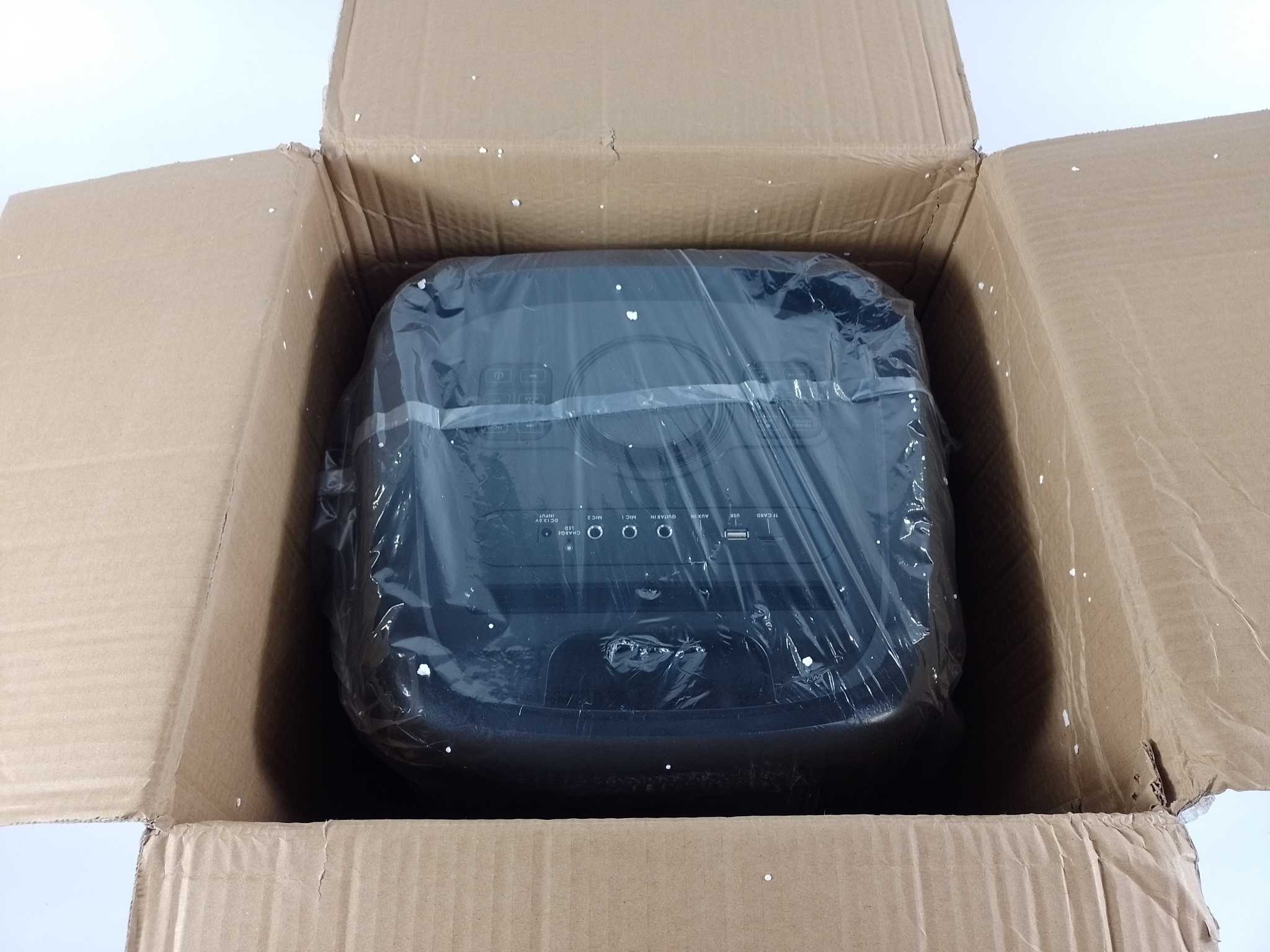 Salora Speaker Partybox 1200. Deze Salora PARTYBOX1200 Party Speaker levert een indrukwekkend geluid met een vermogen van 1200 W, verspreid over twee krachtige 12-inch speakers. De meegeleverde LED-verlichting (adaptief op muziek) zorgt voor de juiste feeststemming. Dankzij Bluetooth 5.0, NFC, FM-radio, streaming via Spotify Connect, AirPlay en SD-invoer stream je muziek moeiteloos. Hij is spatwaterdicht, voorzien van een oplaadbare accu (±5 uur batterijduur) inclusief powerbankfunctie en afstandsbediening — de ultieme showstarter voor elke gelegenheid.